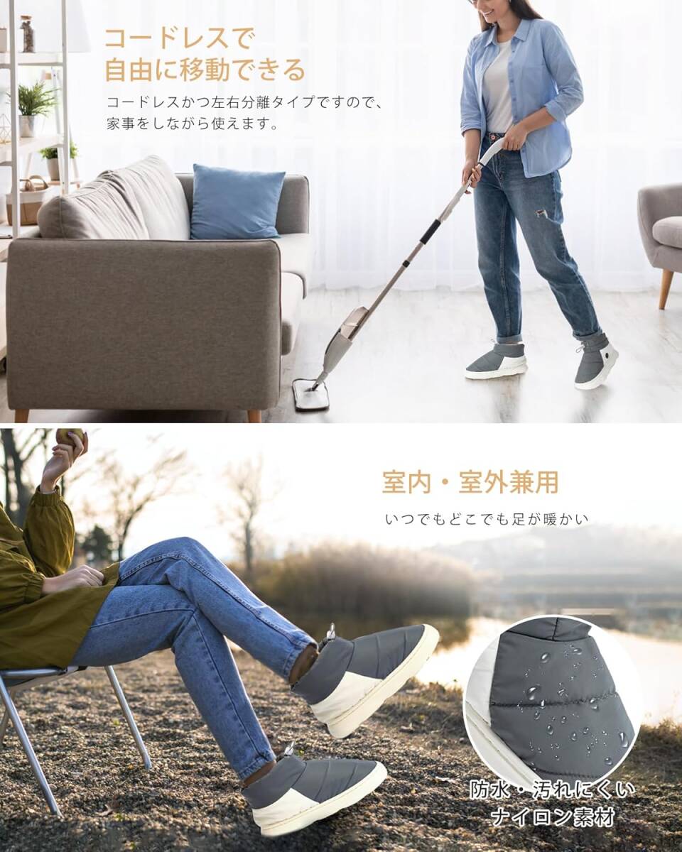 1円 電気スリッパ 足温器 フットウォーマー 足元ヒーター コードレス 3段階温度調節 撥水加工 USB給電式 5000mAモバイルバッテリー2個付き