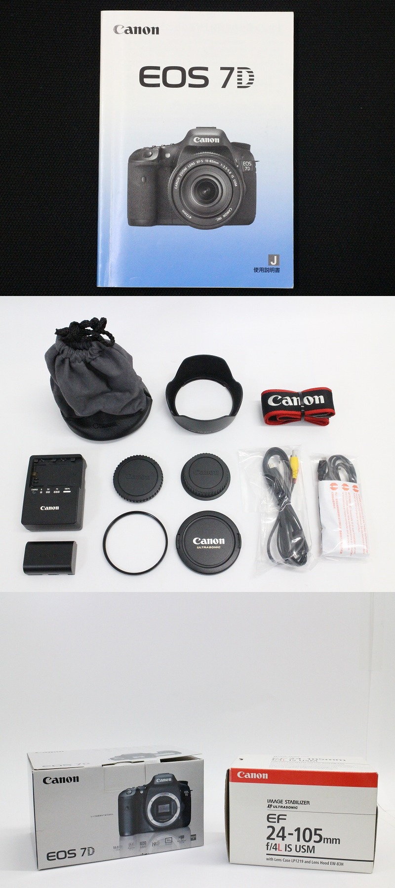 ■メーカー : Canon ■型番 : EOS 7D ■レンズ型番 : EF 24-105mm F4 L IS USM 【商品の状態 当店での確認内容】 基本動作は確認できておりますが、側面カバーにべたつきがございます。 「商品の状態」に関しましては当方主観の目安となります。外観などは中古品で個人差もありますので詳細は画像にてご判断ください。 画像にて不明な点はご質問下さい。 出品商品は画像のものですべてになります。画像に写っているもの以外は付属いたしません。 (中古品となるためレンズ内のチリ/ホコリに関しましては、撮影に影響が出ない限りは記載しておりません。) (総シャッター数が記載の商品に関しましてはあくまで目安となります。) ※注意※ ヤフオクのシステム上、送料表記が送料未定となっておりますが、送料に関しては全て有償となりますので下記を参照下さい。 【送料 全国一律 1,580 円 沖縄、離島は別途お見積り】 ※送料がお得になるサービスです(下取りシステムのご案内です) ※ストア決済決済利用時に※クレジットカードや※PayPay残高/※PayPayクレジットをご利用の方は留意点がございますのでこちらをご参照の上ご利用ください。 当ストアでは商品を安全にお届け出来るよう提携運送会社と協議の上、発泡緩衝材や強度段ボールの使用等 運送会社が指定する梱包方法や資材を採用しております。 より安全にお届け出来るよう商品仕様により梱包サイズが大きくなる場合や個口数が増える事がございます。 【当ストアオークションルールを入札前に必ずご確認ください。】 【落札後の取引手順】 ・落札後は取引ナビにて、必要事項をご入力後、送信ください。 取引終了後48時間(土、日は除く)以内に入力をお願い致します。 ※ご連絡が頂けない場合は落札者様都合でのキャンセルとさせていただきます。 ・落札代金(商品代金+消費税+送料)の入金をお願い致します。 ※大型商品の場合は送料確定後の決済となる為取引ナビを入力頂き、当ストアより送料のご案内が来るまでお待ちください。(土曜、日曜、祝日の場合は翌営業日より順次ご案内いたします) ・お支払い方法はクレジットカード/PayPay残高/PayPayクレジット/PayPay銀行/ゆうちょ銀行のみです。 【落札後の取引手順】 ・落札後は取引ナビにて、必要事項をご入力後、送信ください。 取引終了後48時間(土、日は除く)以内に入力をお願い致します。 ※ご連絡が頂けない場合は落札者様都合でのキャンセルとさせていただきます。 ・落札代金(商品代金+消費税+送料)の入金をお願い致します。 ※大型商品の場合は送料確定後の決済となる為取引ナビを入力頂き、当ストアより送料のご案内が来るまでお待ちください。(土曜、日曜、祝日の場合は翌営業日より順次ご案内いたします) ・お支払い方法は※クレジットカード/※PayPay残高/※PayPayクレジット/PayPay銀行/ゆうちょ銀行のみです。 ※商品代金引換(代引き)のお取り扱いはしておりません。 ※領収証の発行が必要な方はご連絡ください。 ※銀行振込の際の振込手数料はご負担願います。 ・入金確認後に出荷手配を致します。 (原則入金確認後3営業日以内に発送いたしますが、大型や重量のある製品はお時間をいただく場合もございます。) ・発送は当店指定の運送会社の元払いのみでの発送となります。 ※他の運送会社、送料代引き等は致しかねます。 ※落札者様ご自身での運送会社の手配いただく事も可能ですが荷物事故の責任の所在の問題上、梱包は致しかねます。 ※店頭にお越し頂き手渡しも可能(福岡市早良区)です。ご希望の方はご落札後にご連絡下さい。 ・大型/重量物商品の送料につきましては商品の特性上、荷降ろし状況等により送料が大きく前後し運送業者に別途見積りが必要な為、早めのお問い合わせにてお見積り上、入札をお願い致します。 【初期不良の保証について】 ・商品到着後の初期動作不良、また配送中の事故による破損、不具合が有る場合は、商品発送後10日以内に当ストアまでご連絡ください。当ストアでは修理での対応を優先させて頂きますが、修理不可の場合は全額返金させて頂きます。 (商品代金+消費税+送料のお支払い頂いた金額となります) 【初期不良の保証の対象外について】 次の場合は保証の対象外となりますのご留意ください ・ジャンク商品、現状商品、難あり商品での出品商品。 ※難あり商品に関しましては動作確認時に一部動作不良が確認された商品になり、記載している動作確認以外にも、動作不良がある可能性もございます。こちらに関しましても保証対象外となりますことをご理解ください。 ・年代物のオーディオなどで、当店にてわからない範囲で部品が交換されている場合 ・楽器類の特殊機材(マイクロスコープ等)での確認までは行っておりません。気になる方は事前にご質問いただくか、入札をお控えください。 ※初期不良に関しましては【商品の状態】に記載のもの、またそれによって起因する動作不良は対象外です。 ※商品発送後10日を過ぎてのご連