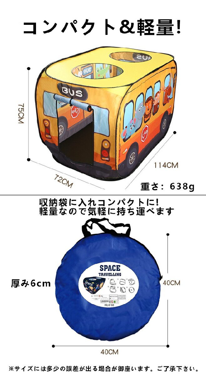 ポップアップ式なので広げる、畳むだけの簡単組立、ラクラク収納。