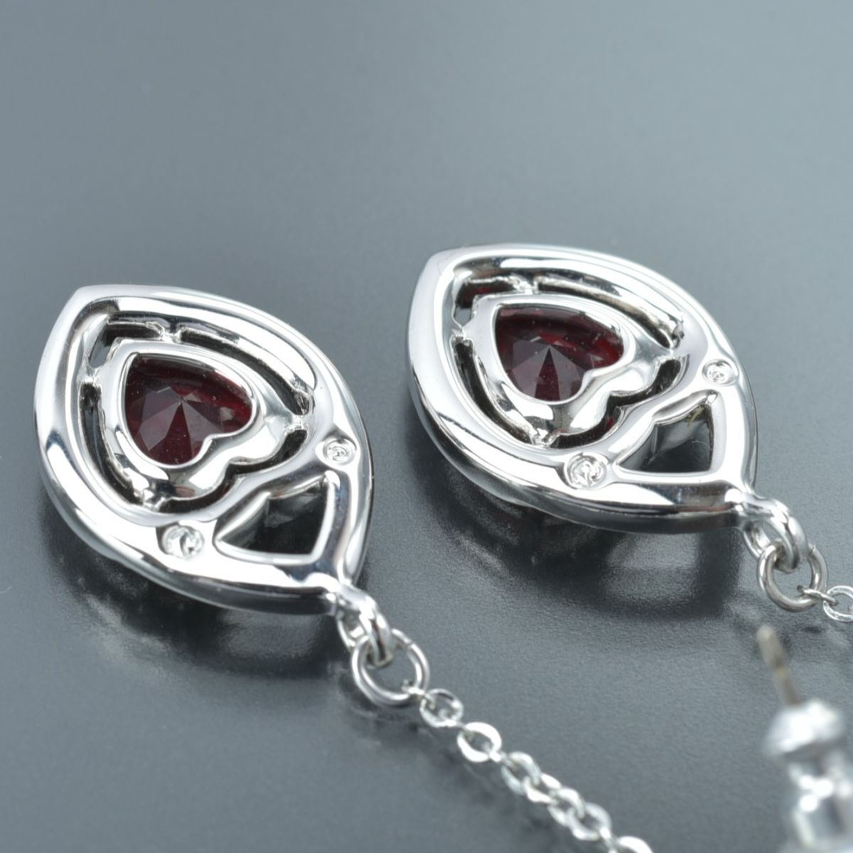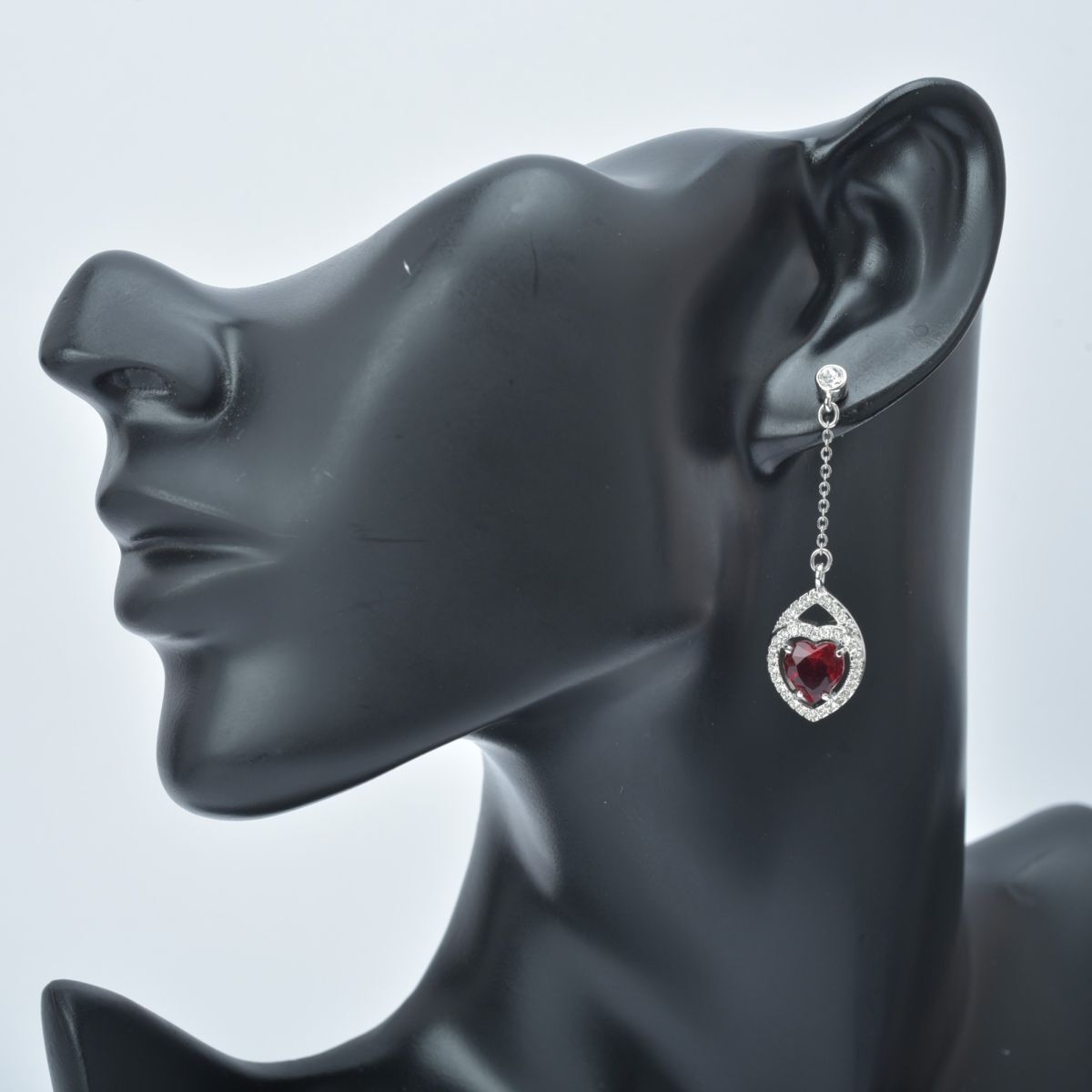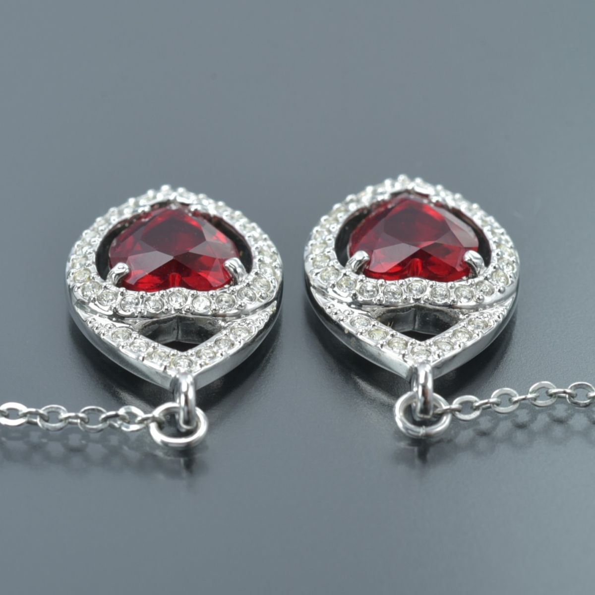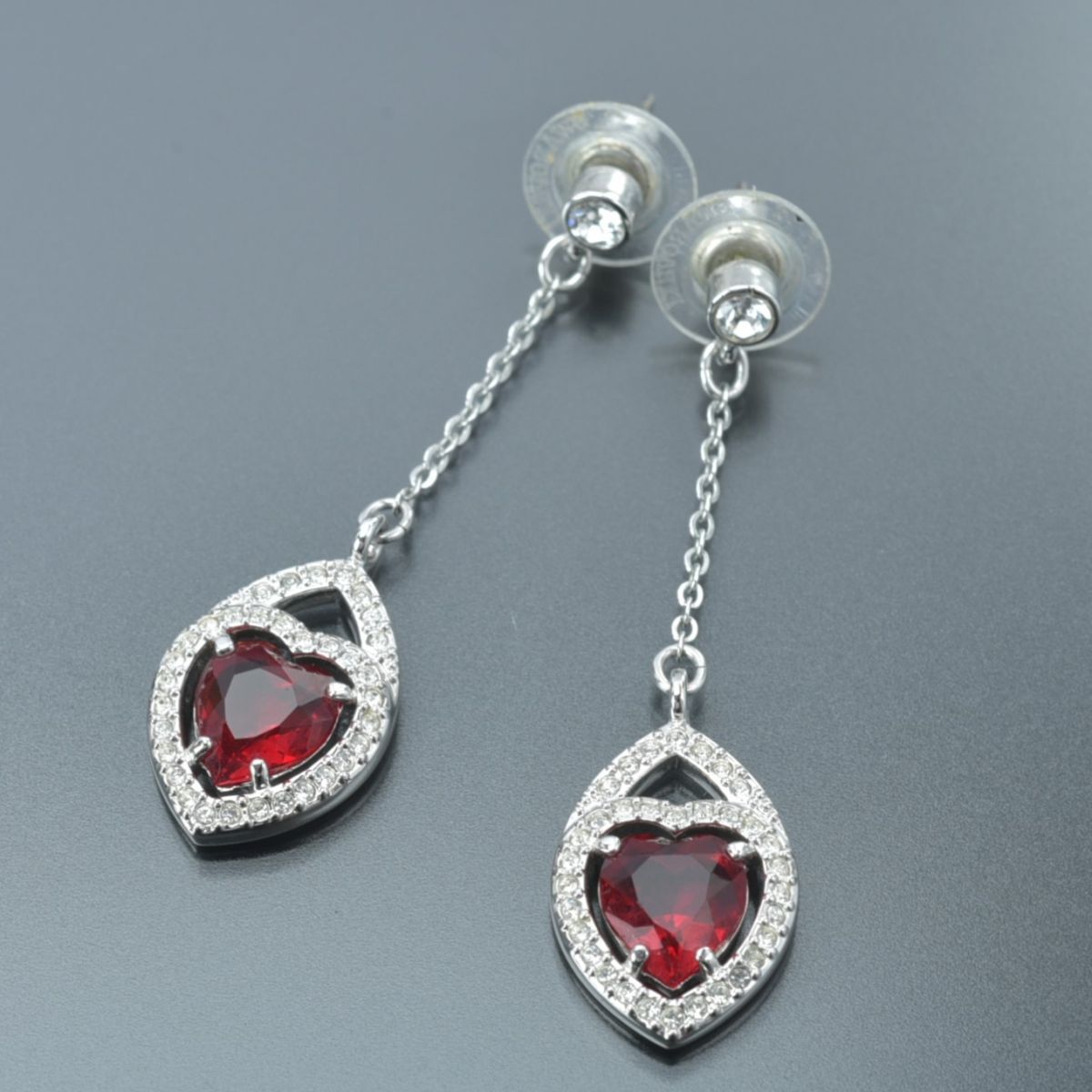 美品 スワロフスキー ハート ピアス ラインストーン シルバー レッド スイング チェーン クリスタル SWAROVSKI アクセサリー #N※C761