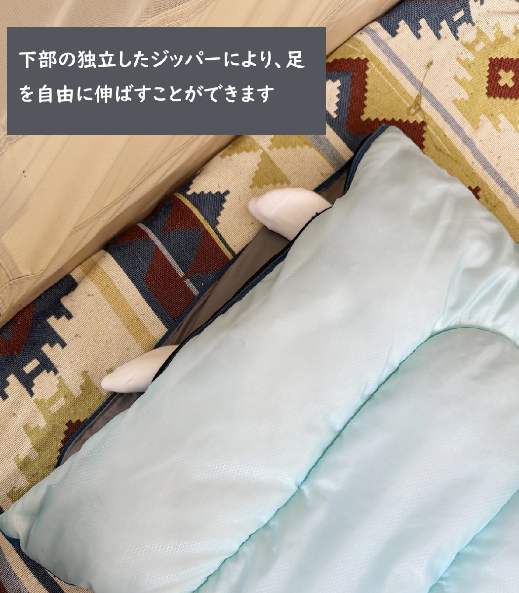 ★左側のジッパーデザインは完全に広げてスリーピングパッドとして使用できます。
