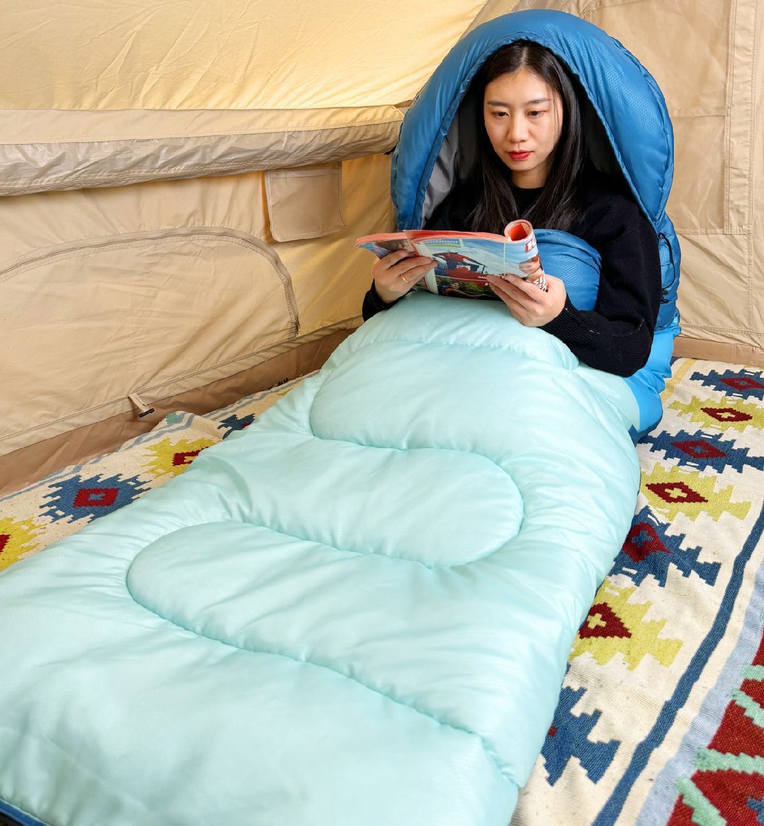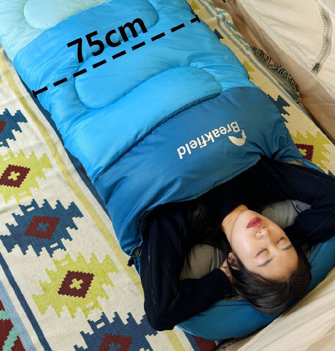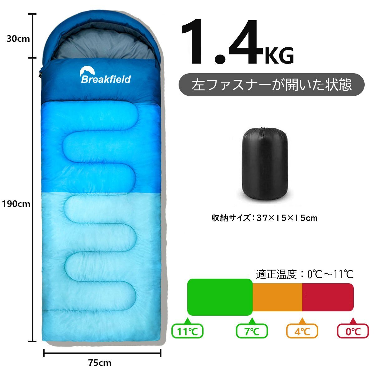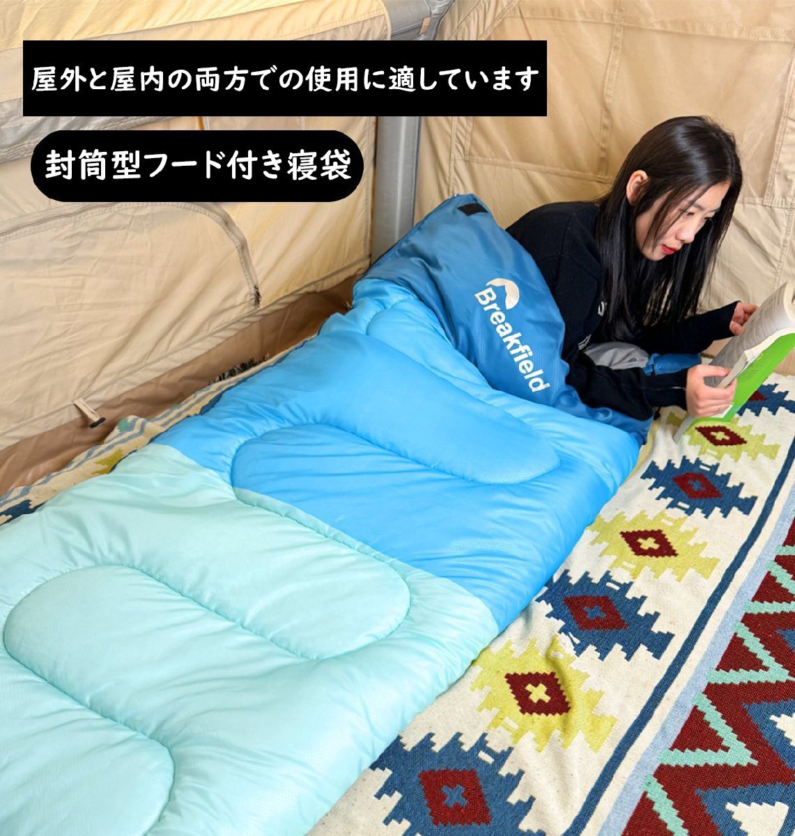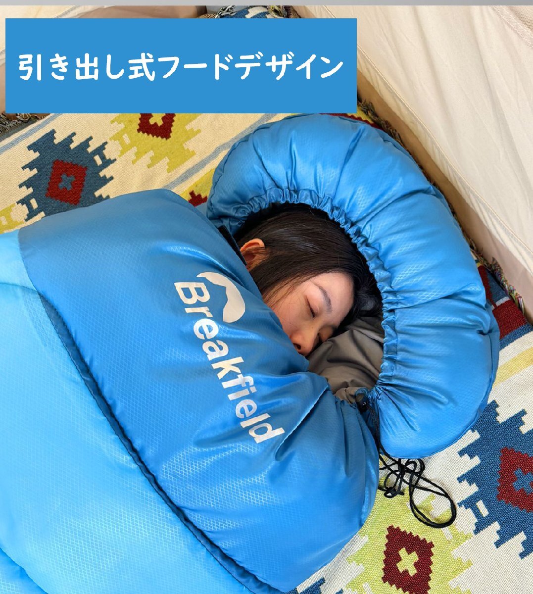 ■ Breakfield アウトドア用カラーブロックエンベロープフード付き寝袋は、0℃~11℃での使用に適しています。寝袋を広げてスリーピングパッドとして使用できます。
