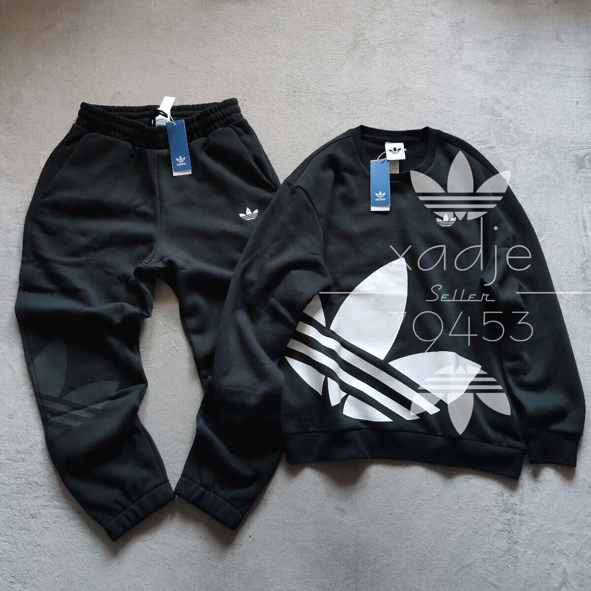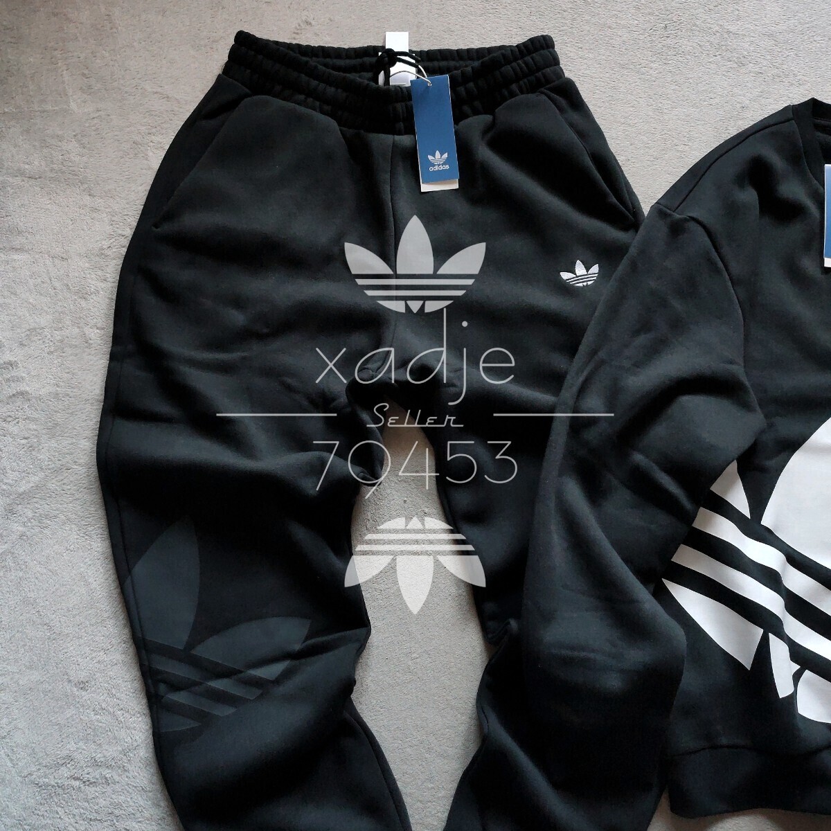 新品 正規品 adidas originals アディダス オリジナルス 上下 セットアップ スウェット トレーナー パンツ 黒 白 定価20900円 裏起毛 3XL