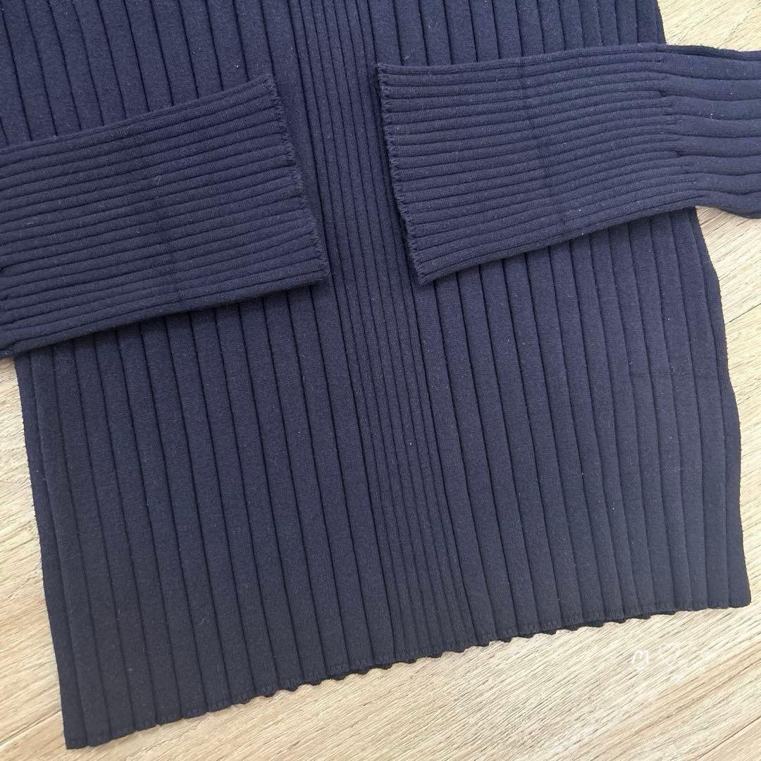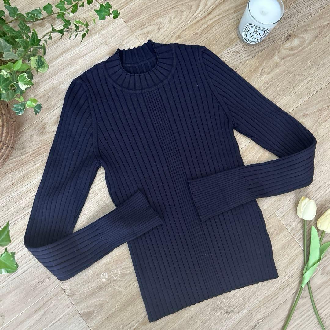 厚すぎず薄すぎない絶妙な生地感に上品なミッドナイトブルーが印象的なリブセーター。