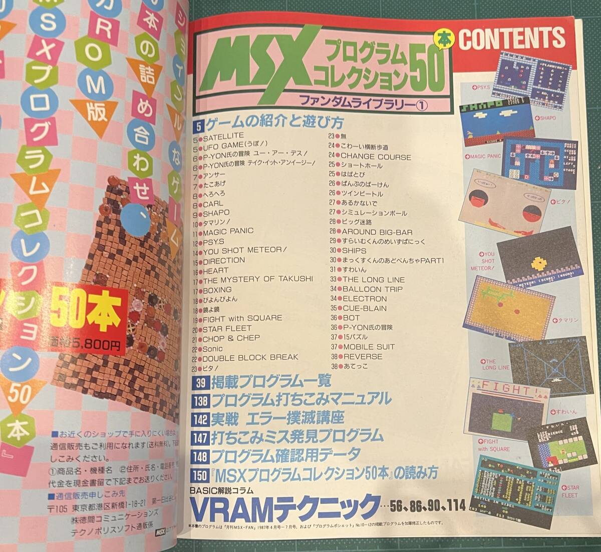 MSX プログラムコレクション50本 月刊MSX・FAN10月号増刊 ファンダムライブラリー① 徳間書店