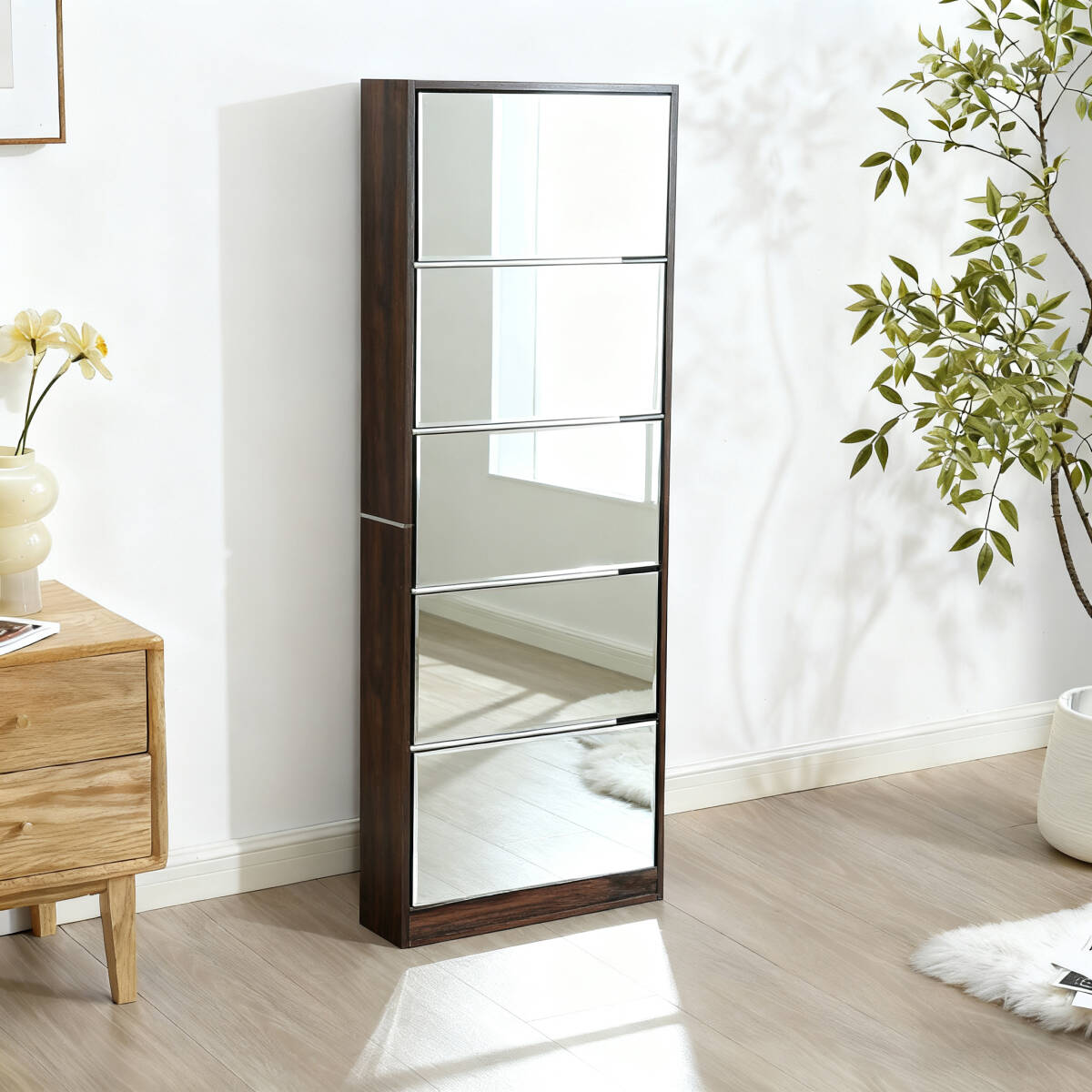 【新品】【鏡タイプ】下駄箱 5段 シューズラック 玄関収納 ひとり暮らし スリムタイプ 靴収納ラック 靴収納棚 倒れ防止道具取付必要