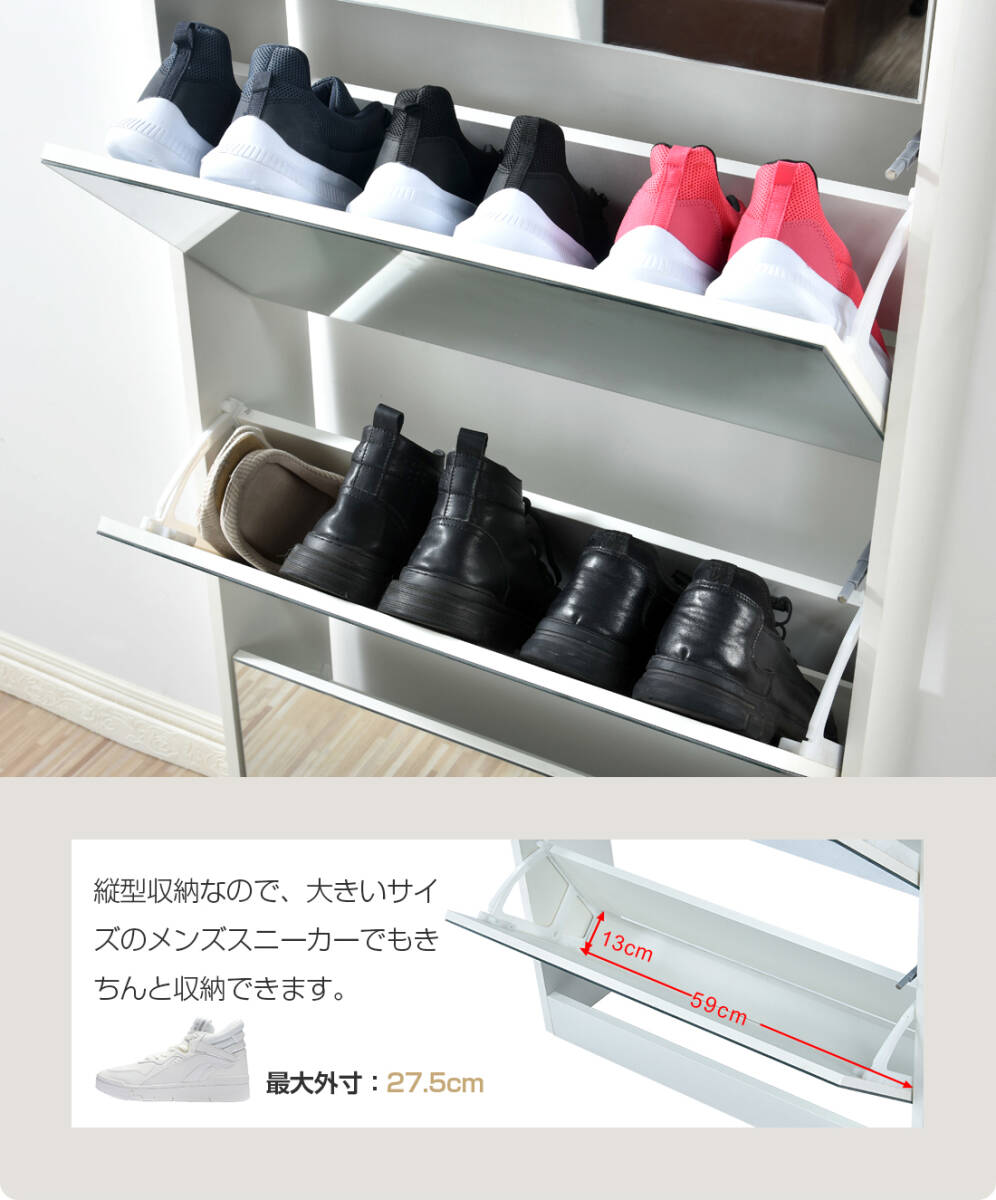 • 【使いやすさにも、見た目にもこだわりを】より使いやすく、より美しくにこだわり、設計に工夫を施しました。奥行きはcmとコンパクトに仕上げ、余裕の少ない玄関スペースにも置きやすいサイズ感。