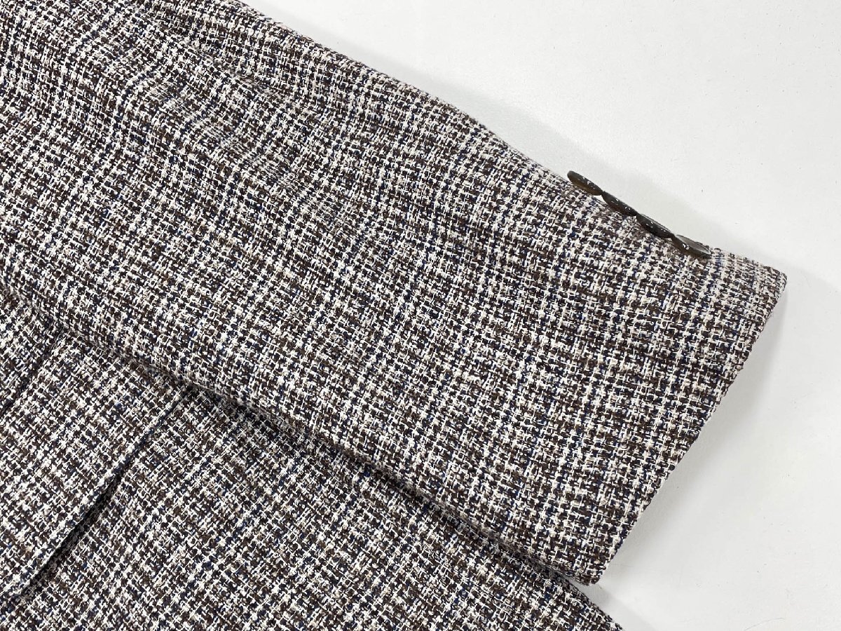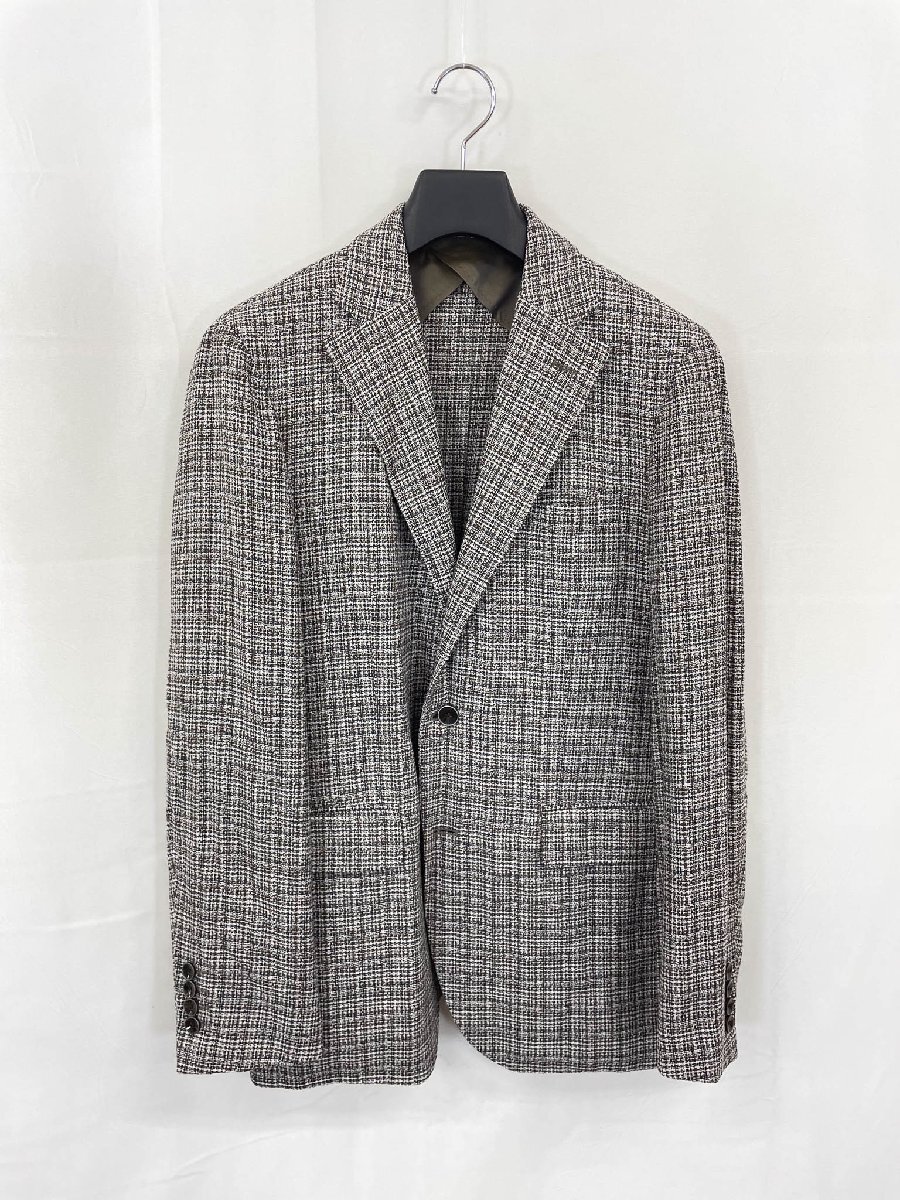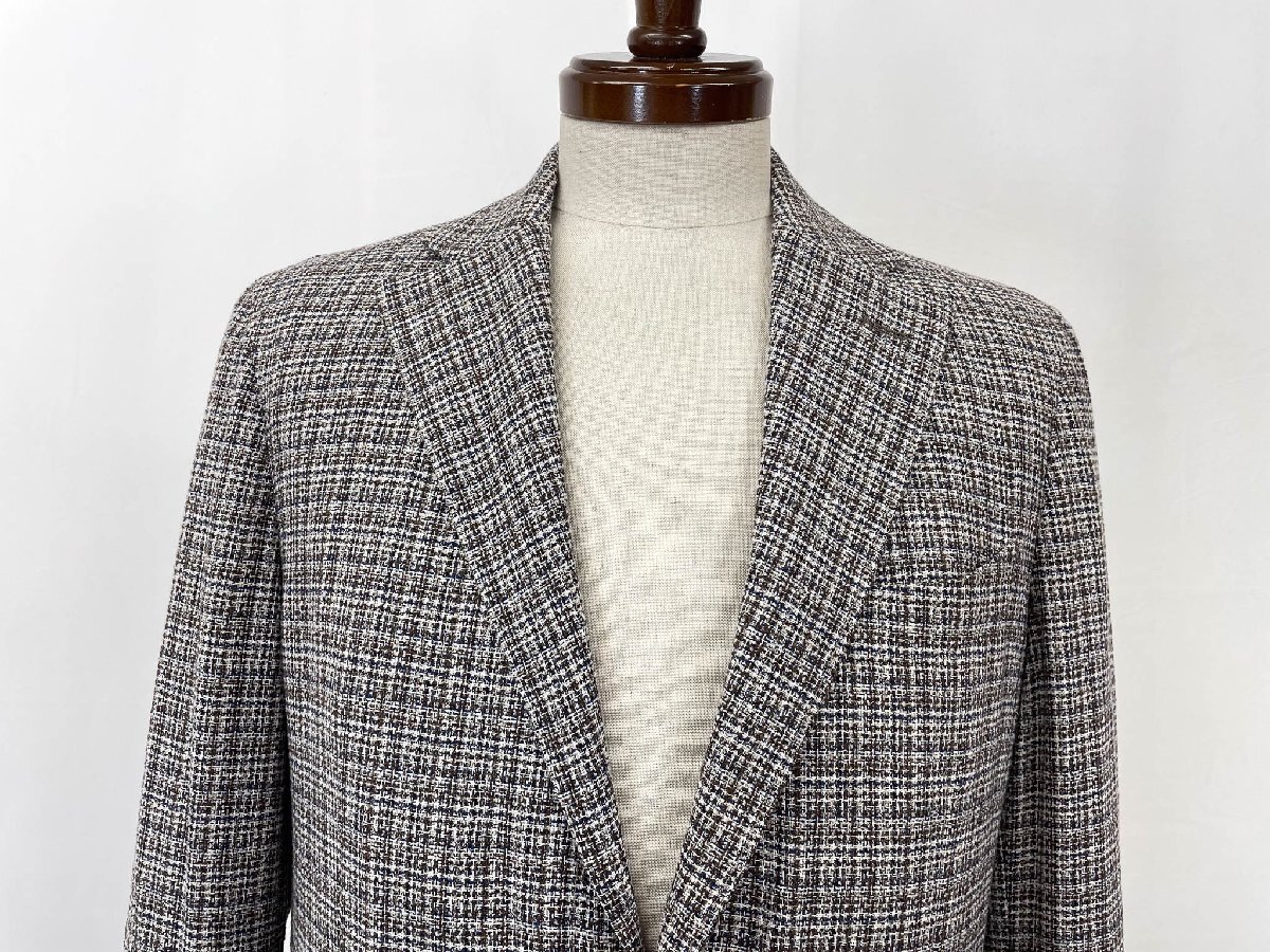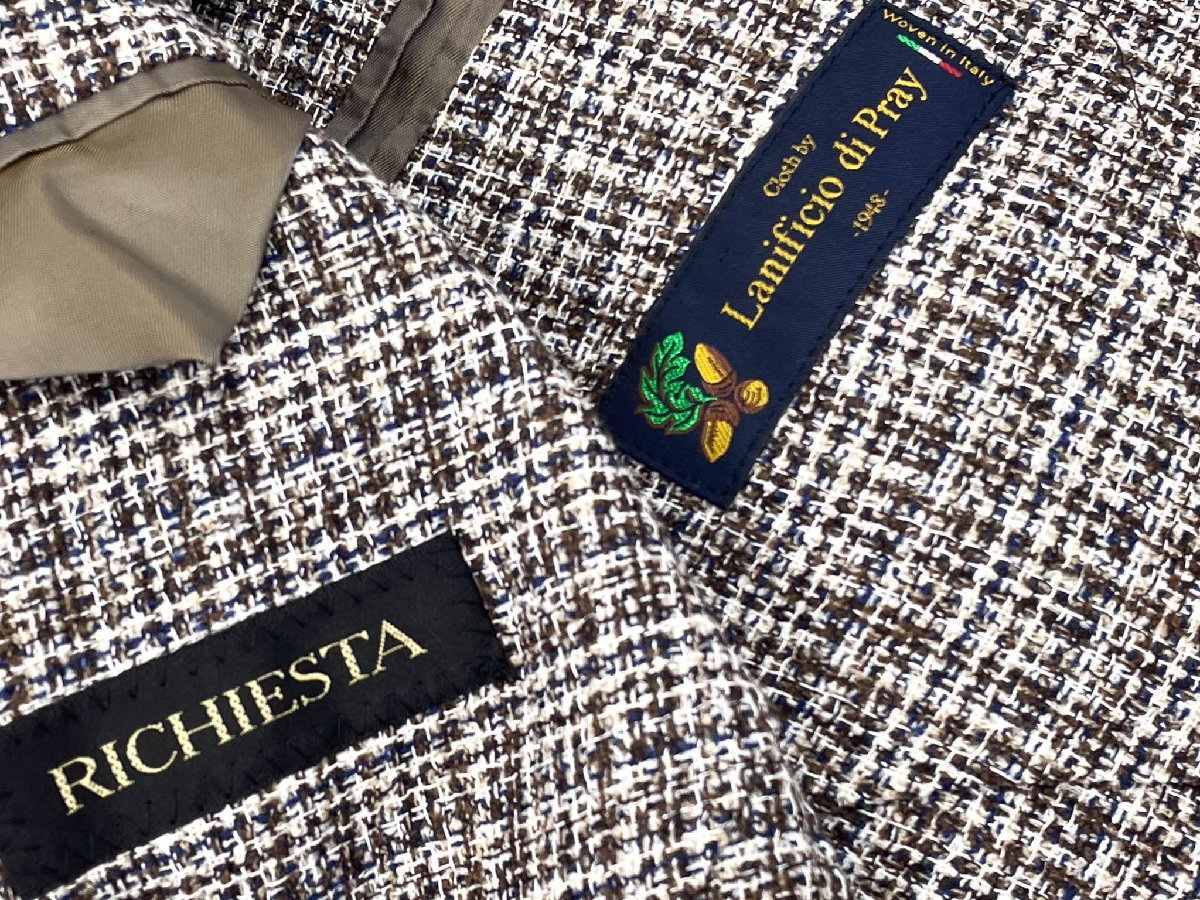 極美品【RICHIESTA リキエスタ】LANIFICIO DI PRAY シングル2ボタン 織柄 アンコンジャケット (メンズ) ABL 茶×紺×白系 ◇17MJ0709◇