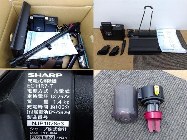 コードレススティッククリーナー EC-HR7 シャープ 動作OK 本体+バッテリー質量:1.4kg 軽量 充電式掃除機 RACTIVE Air サイクロン式 中古