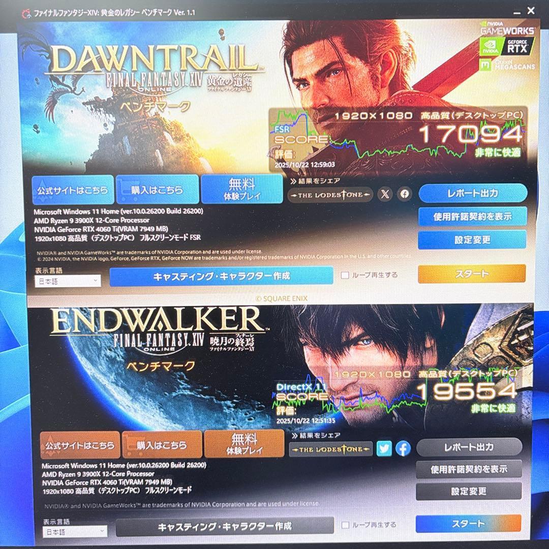 各種ベンチマークソフトにて負荷をかけて、動作に問題ない事、画像の通りゲーム性能が出ている事を確認しています。