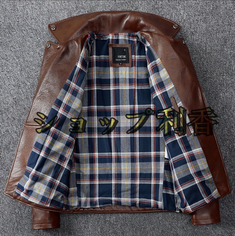商品説明 採寸は下記通りです、ご参考ください。素材:頭層牛革サイズ:S着丈60cm 肩幅40cm 胸囲96cm 袖丈58cmM着丈61cm 肩幅41cm 胸囲100cm 袖丈59cmL着丈62cm 肩幅42cm 胸囲104cm 袖丈60cmXL着丈63cm 肩幅43cm 胸囲108cm 袖丈61cm2XL着丈64cm 肩幅44cm 胸囲112cm 袖丈62cm3XL