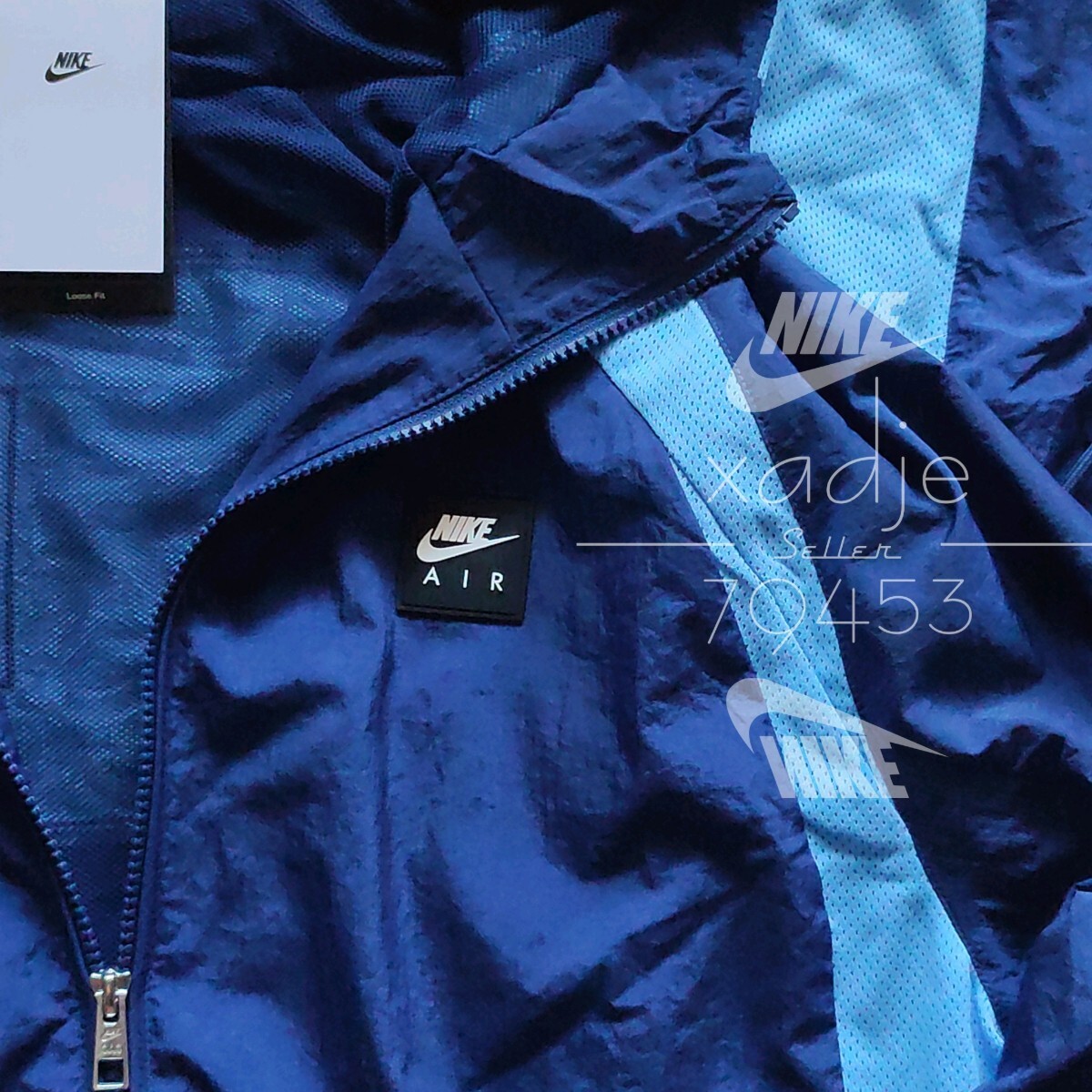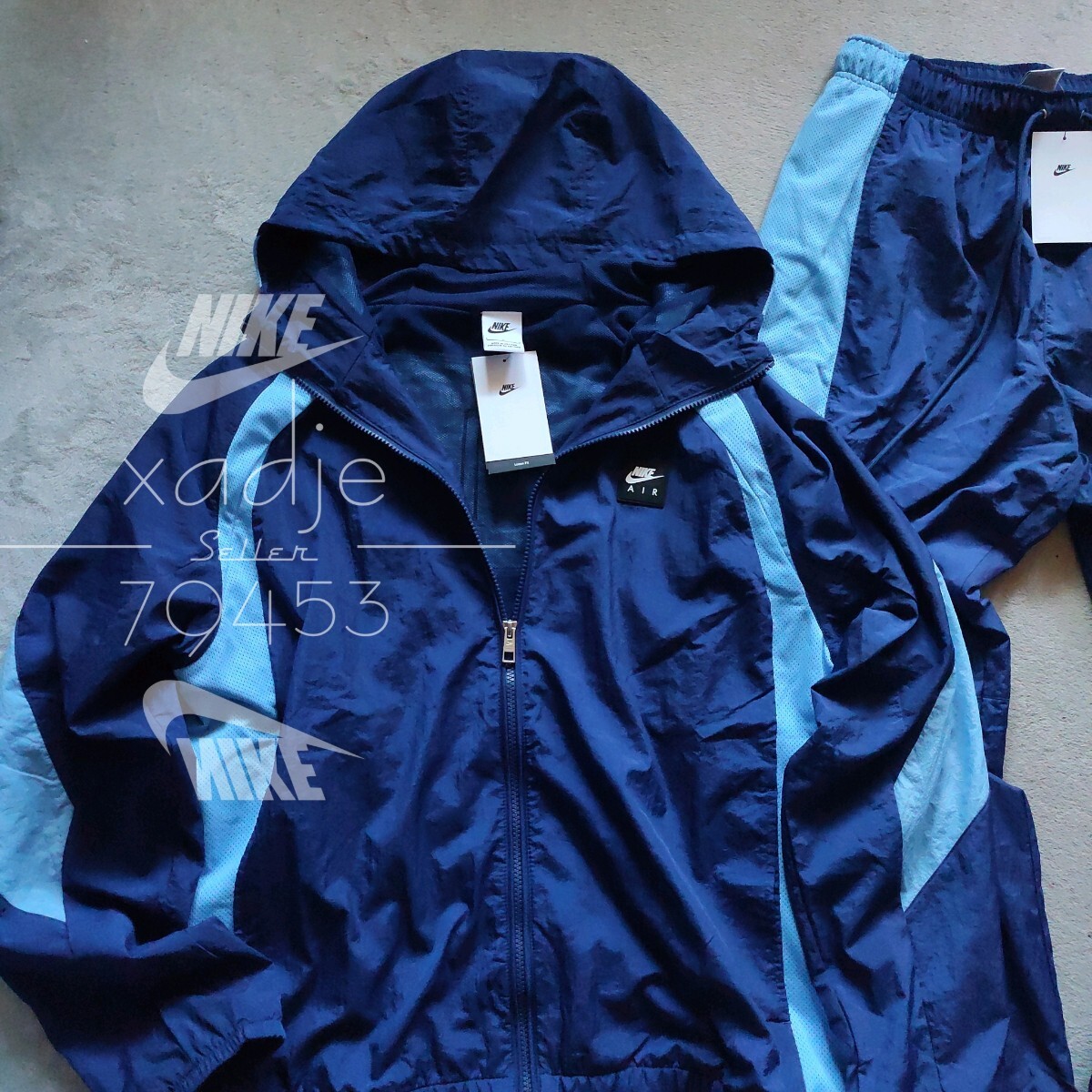 新品 正規品 NIKE AIR ナイキ 上下セット ナイロン パーカー パンツ セットアップ 紺 ネイビー 水色 裏地メッシュ 定価26070円 XL