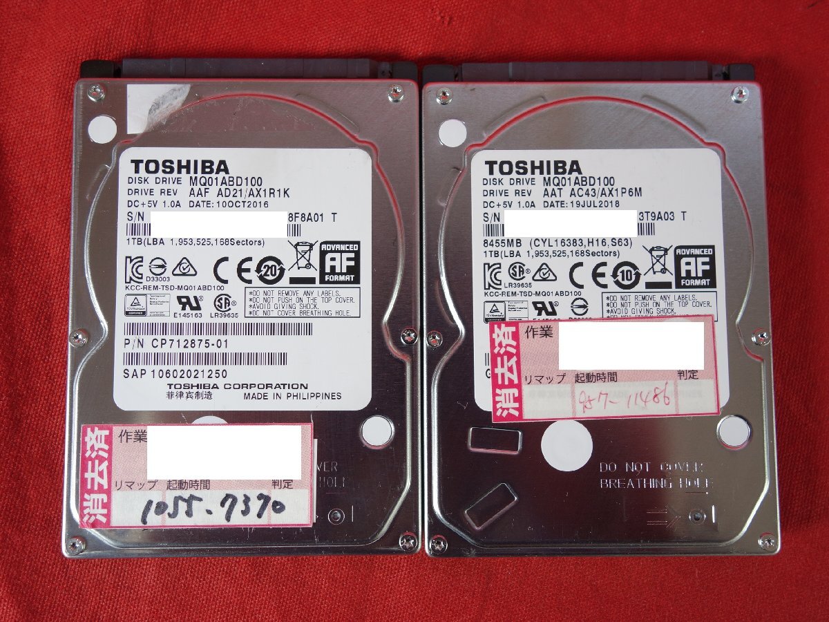 東芝 MQ01ABD100 1TB 中古 SATA 2.5インチ 内蔵ハードディスク 2本セット 9.5mm 【10日間保証】