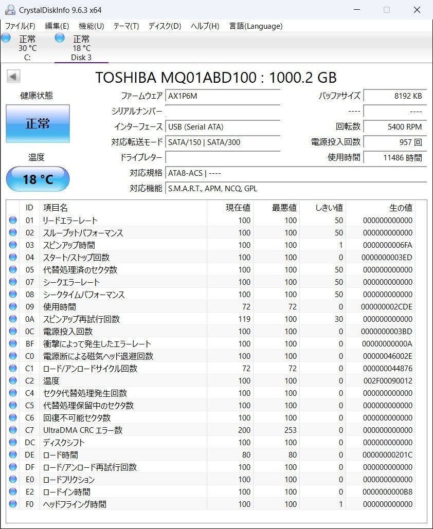 ・クリスタルディスクインフォで正常判定表示以外の保証はありません(書き込みや読み込みが遅い、クリスタルディスクインフォで正常判定にもかかわらず不良セクタがある等での保証はありません)。