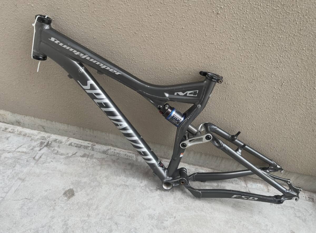 使用状況:スペシャライズド スタンプジャンパー FSR M4フレーム中古の出品となります。サイズはS、素人採寸でC-C 525mm、C-T 430mmです。FOX Float R Pro Pedalサスペンションユニットが装着されています。Canecreek製のヘッドパーツとシートクランプが付いています。写真にはありませんが、リアディレーラーエンドも付属します。フレームにはタッチアップ跡などあります。フレームからの組み上げ練習やパーツ取りにも良い素材かと思います。