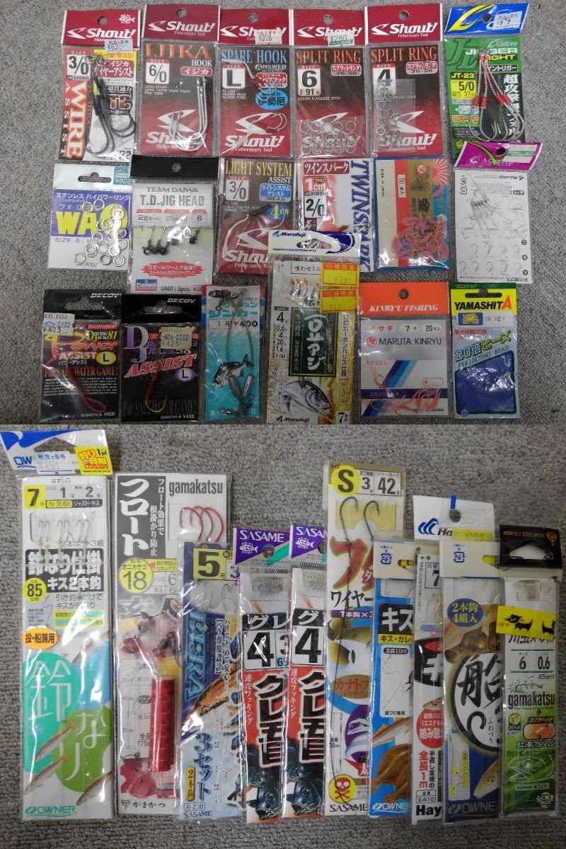 ★24―052★釣り用品大量まとめ シマノ フローティングベスト/ウキ/釣り針/仕掛け/高速リサイクラー/ダイワ デッキサンダルM [140]