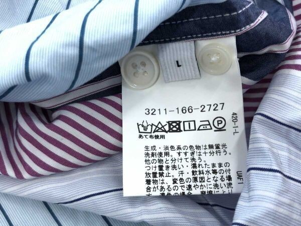 ユナイテッドアローズ UNITED ARROWS green label relaxing アメカジ トラッド パターンストライプ 長袖シャツ メンズ 綿100% L ピンク青系です。