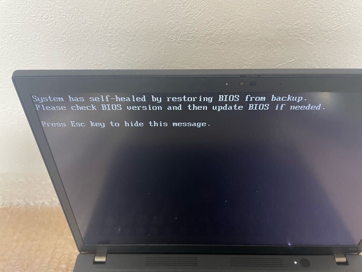 ★system has self healed by restoring BIOS from backup表示あり、ジャンク品の出品です。