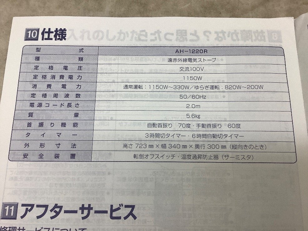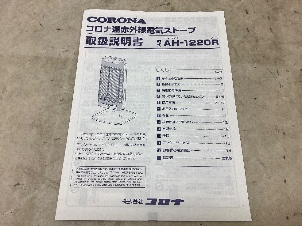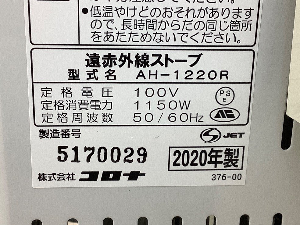 コロナ 遠赤外線電気ストーブ コアヒート AH-1220R 1時間以上の動作確認済 2020年製/ACB 中古品