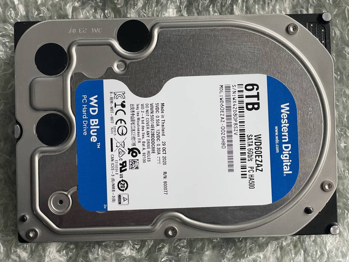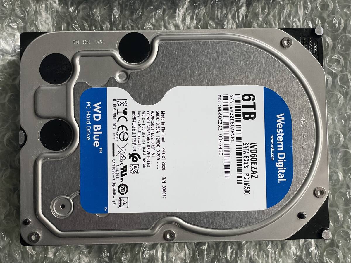 Western Digital / WD60EZAZ / SATA 3.5インチ 内蔵HDD / 6TB ★4台セット★ ★中古完動品★ ★1円スタート★ 初期化済み 合計24TB
