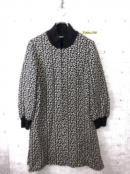Bella Colline レディース ヒョウ柄 フロントジップ ニットワンピース 黒オフホワイト です。