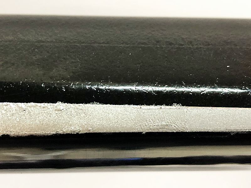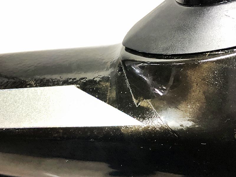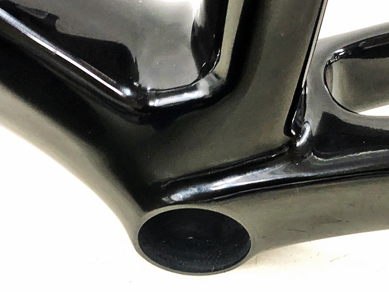 訳アリの理由は、トップチューブ上面にヘコミと思われる箇所があり、上面全体に加工が施され、光沢のないマットなザラつきのある状態となっています。