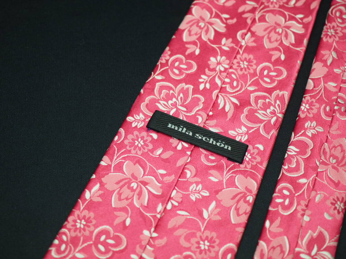 美品【Mila Schon ミラショーン】 G1838 ピンク系 SILK ブランド ネクタイ 古着 良品 転売 仕入