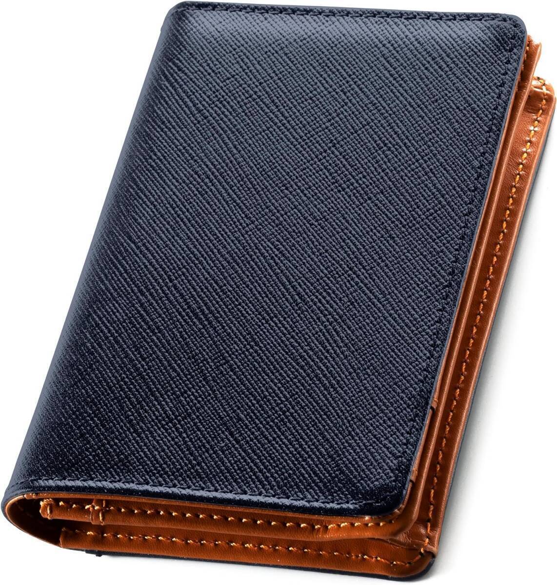 名刺入れ メンズ 本革 【高級サフィアーノレザー 70枚収納】 大容量 カードケース (ネイビー)