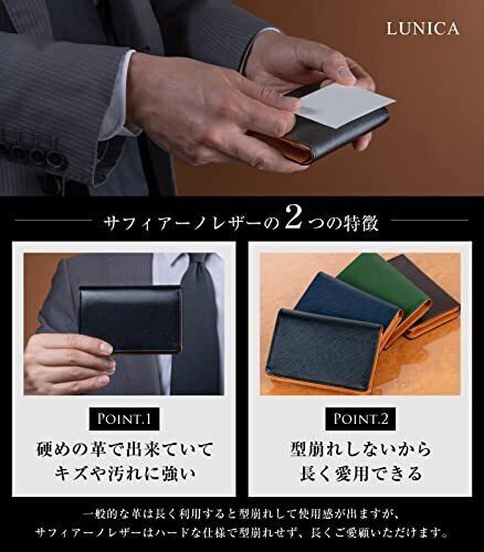 名刺入れ メンズ 本革 【高級サフィアーノレザー 70枚収納】 大容量 カードケース (ネイビー)ア