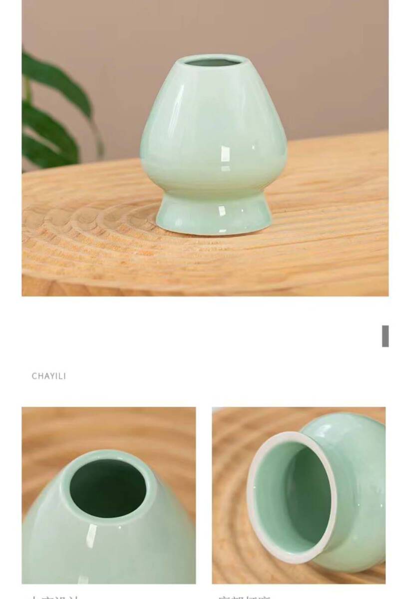 【4点セット】抹茶セット 茶道具 初心者 自宅用 お点前セット 陶器 茶筅立て お手入れも簡単(グリーン色)GR35