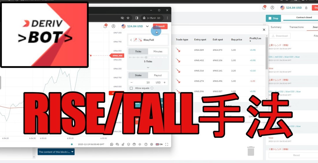 [DERIV bot04]デリブ自作ボットファイル/ RISE&FALL 取引手法・バイナリーボットx1個