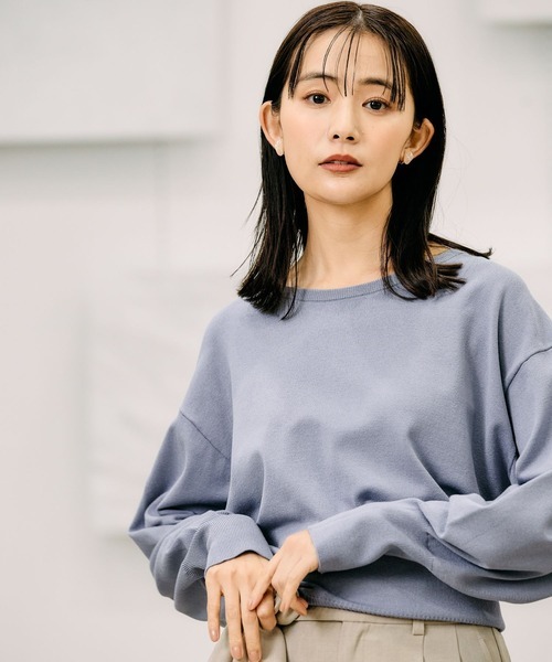 すっきりとしたクルーネックと程良いワイドシルエットでこなれ感が出ます。