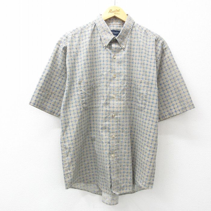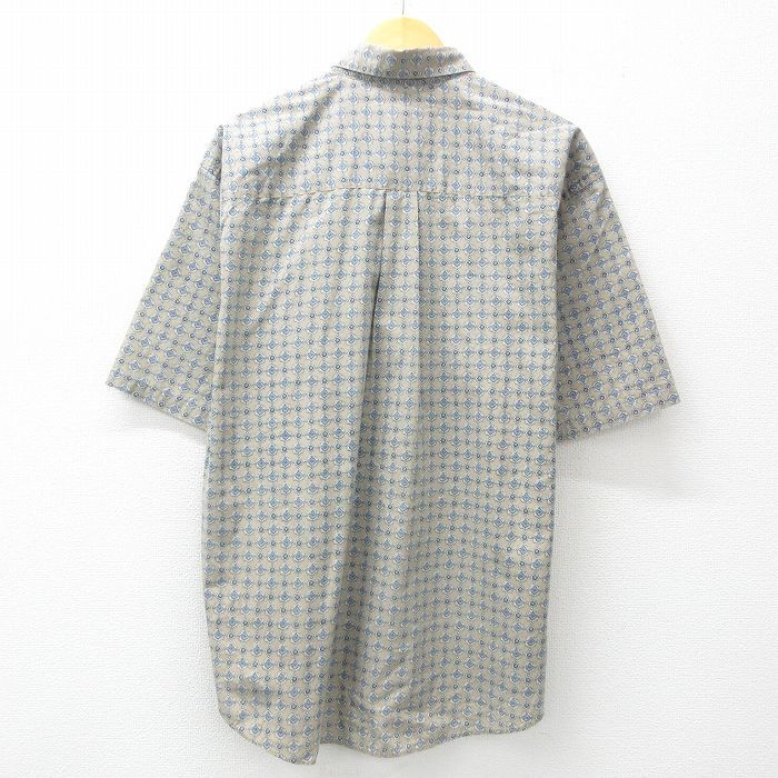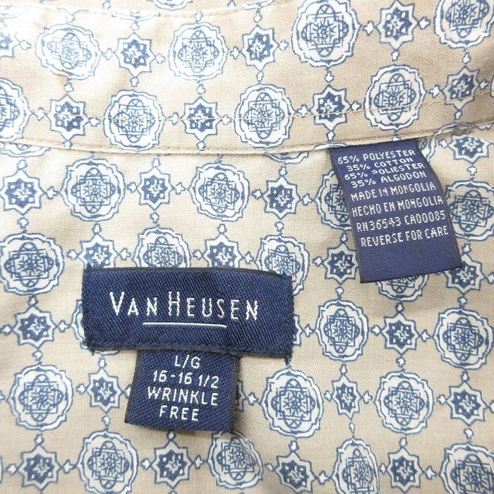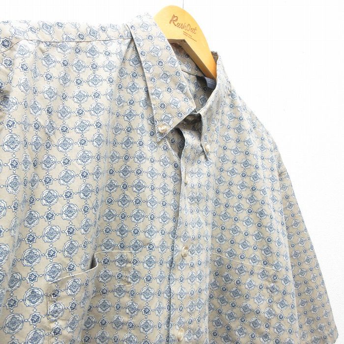 【商品名】 XL★古着 バンヒューセン 半袖 シャツ メンズ 総柄 ボタンダウン ベージュ系他