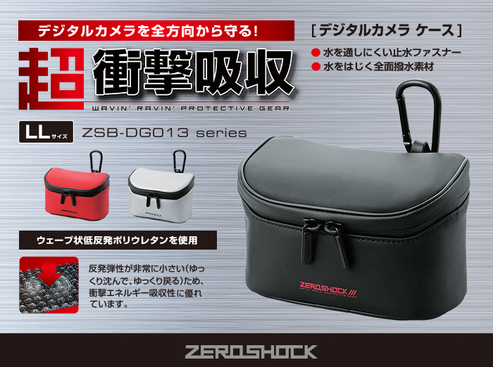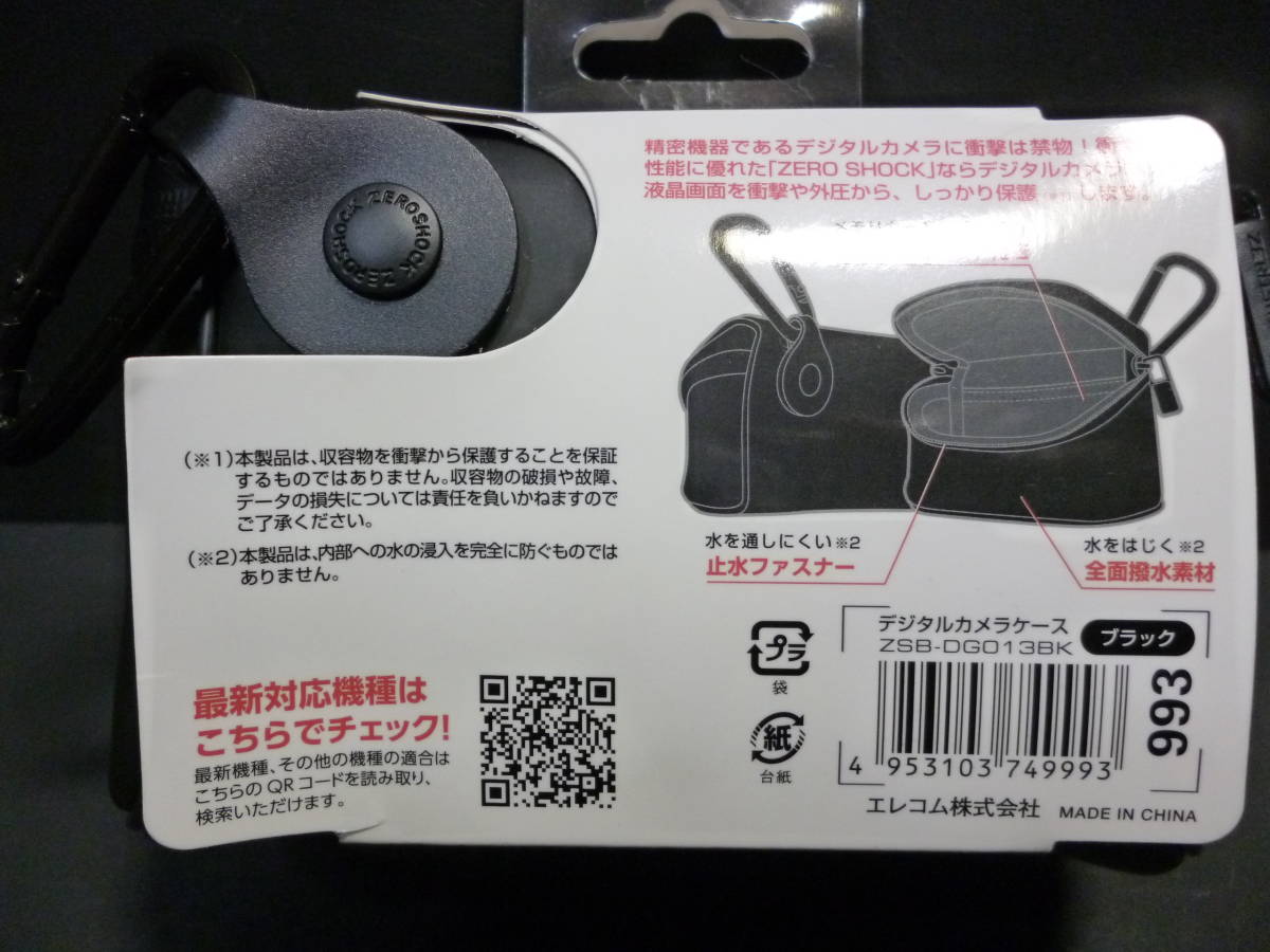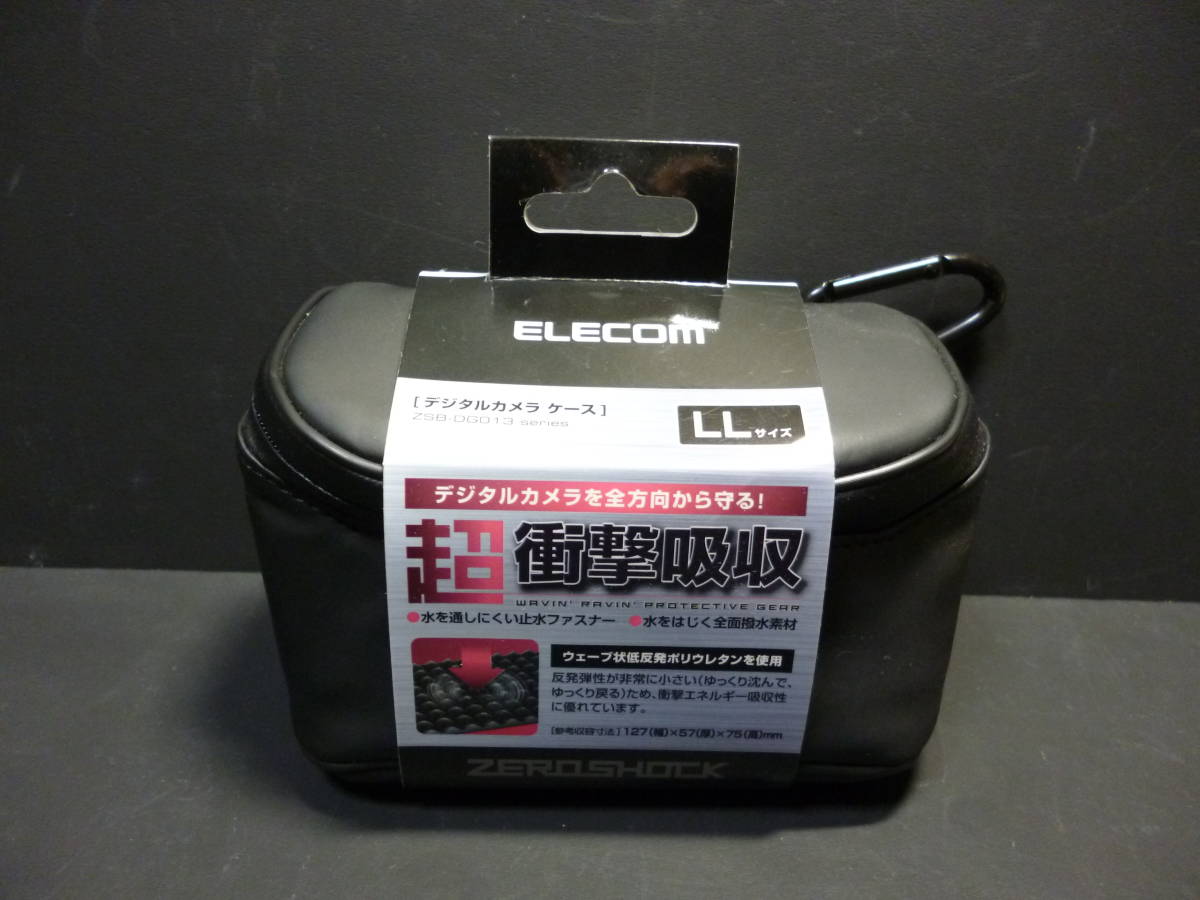 ELECOM製 超衝撃吸収 ZEROSHOCK デジタルカメラケース 新品です。 品番=ZSB-DG013BKでカラーはブラックのサイズがLLサイズになります。(参考収容寸法 幅127mm×厚み57mm×高さ75mmです。) 内側に貼られたウェーブ形状の低反発ポリウレタンが中のカメラを衝撃からガッチリガード、止水ファスナーで防水性もOKです。 ケースの表と裏で色が違うおしゃれなツートーンカラーもお洒落ですよ! アウトドア・キャンプにいかがでしょうか? 定価=2904円、もし定形外郵便で宜しければ全国450円で発送可能です。 よろしくお願いします!