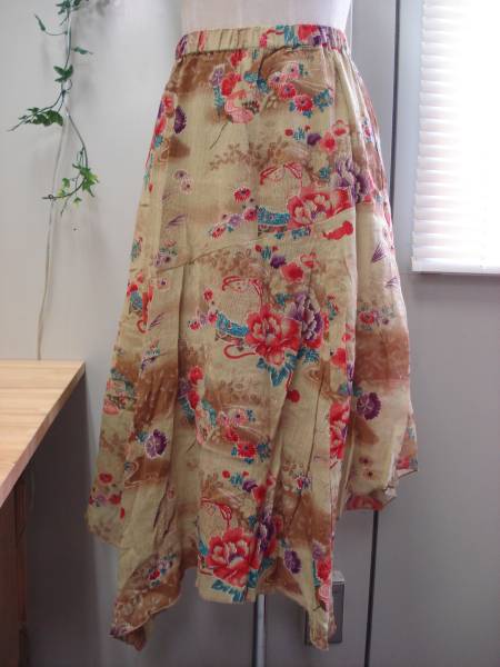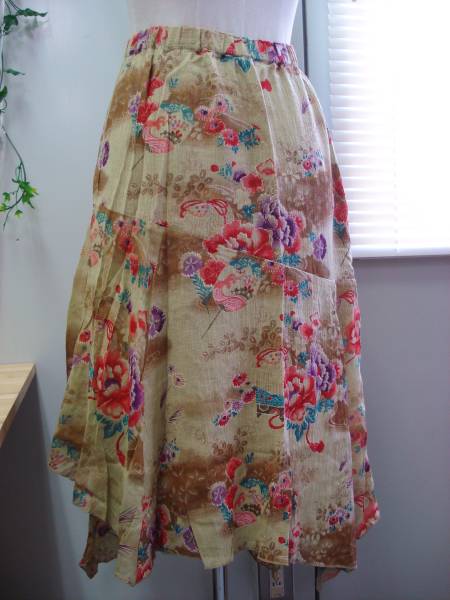 ふわっと柔らかな生地と、麻のようなしっかりとした手触りの違う生地を使用した、お洒落なスカートとなっております(*^^*)