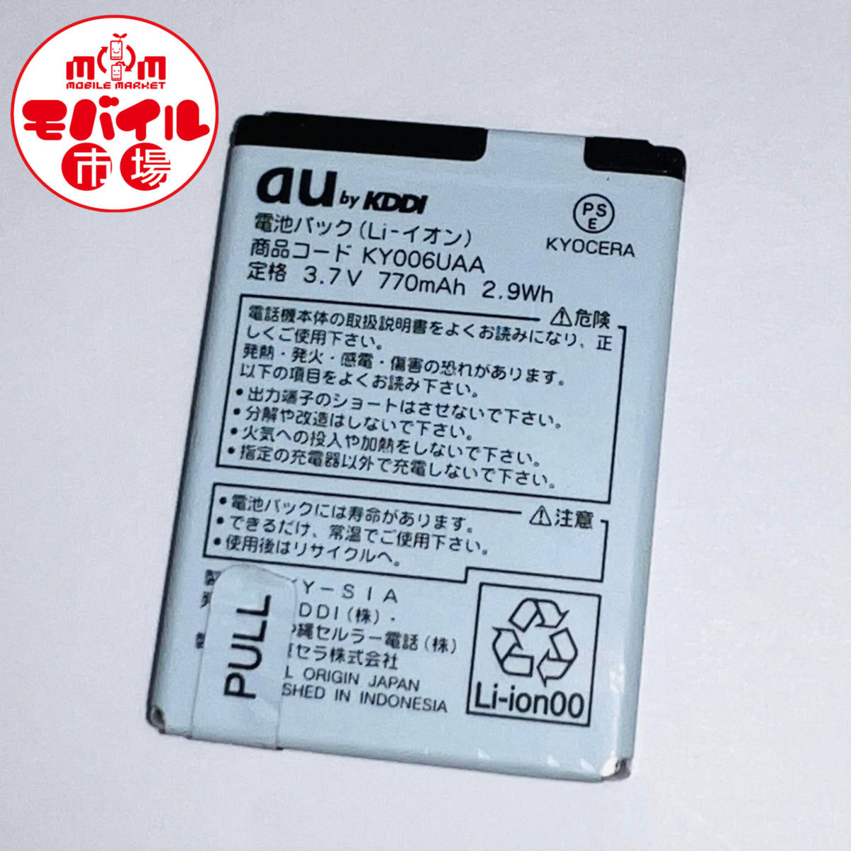 使用品名 : au 純正電池パック KY006UAA 京セラ製 状 態 : 充電確認済み・中古・クリーニング済み。 |