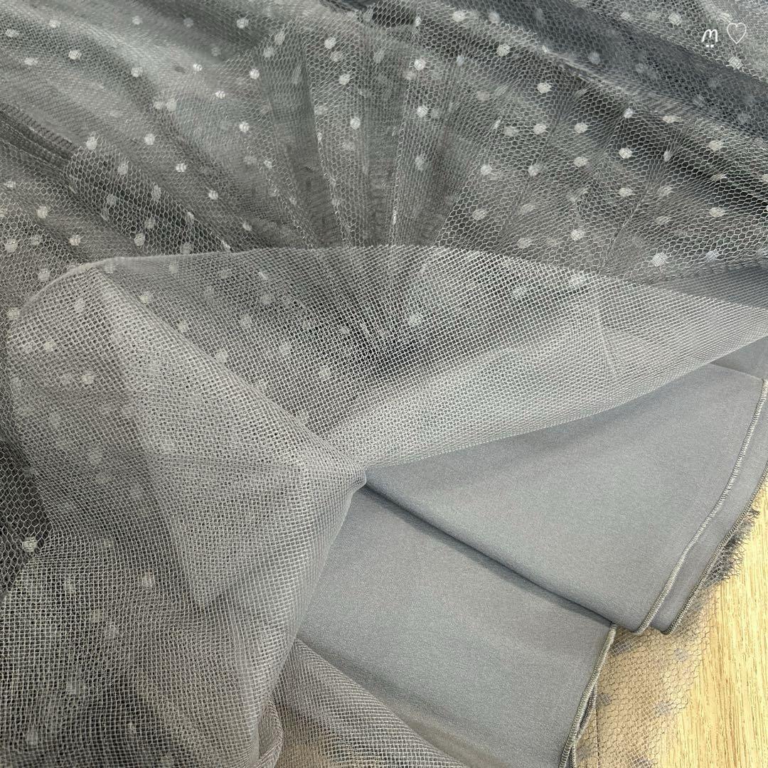 ドットチュール、チュール、裏地の3枚重ねで作られたチュールスカート。