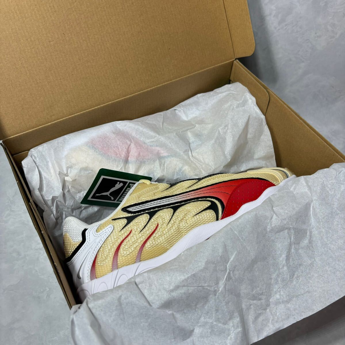 オリジナルモデルは、サマーメロンとレッドを基調とした配色やグラデーションの効いたアウトソールなど、2000年代初頭のフューチャリスティックなスニーカーデザインを体現。シルエットやディテールは現在のスニーカーブームにおいても色褪せず、2024年には"A$AP ROCKY(エイサップ ロッキー)"の主導によりオリジナルカラーの復刻版がリリースされ、発売と同時に瞬く間に完売に至った。復刻版では、ソールの素材を最新の"CMEVA"フォームへとアップデートして軽量化と快適性を高め、さらにシュータンやライニングのフィット感を見直すことで、現代のストリートウェアにも馴染む仕様へと進化している。