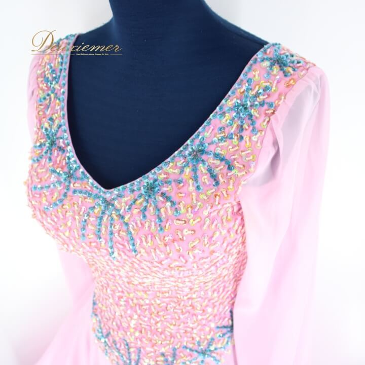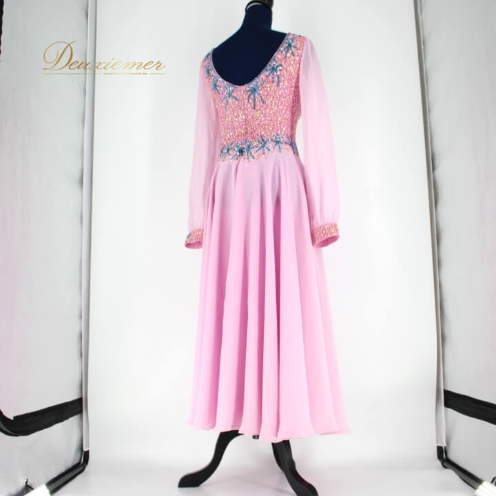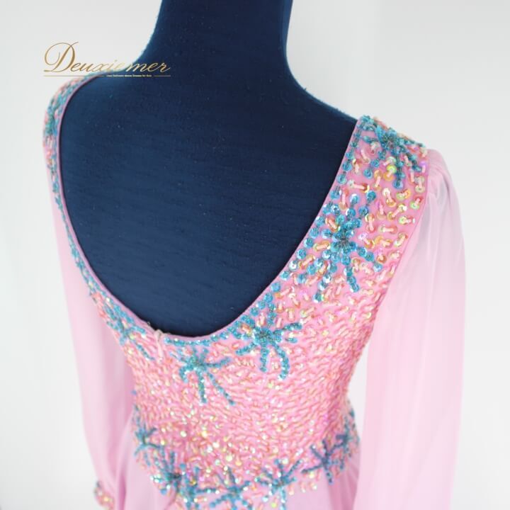 | 【商品名】社交ダンス衣装 ドレス 【サイズ】表記L 平置き実測:総丈約120cm(裾~肩部まで)、肩幅約37cm、身幅約39cm、ウエスト約32~44cm~ ※実測の為、多少の誤差はご了承ください 【仕様】 ・首裏ボタン留め仕様 ・レオタード(ボタン)仕様 ・伸縮性有り ・肩パッド無し ・胸パッド有り 【品質表示】 不明 ------------------------------------ 【ポイント】 ▽Beed point ▽ピンク×ライトブルー ▽華やかビジューで印象的◎ ▽三層になったスカートは上品な広がり ------------------------------------ 【撮影時使用トルソー】 種 類:女性用トルソー9号 (一般的に使用されるサイズです) サイズ:肩先~床約135cm(身長約160cm)、肩幅約37cm、バスト約88cm、ウエスト約66cm、ヒップ約89cm |