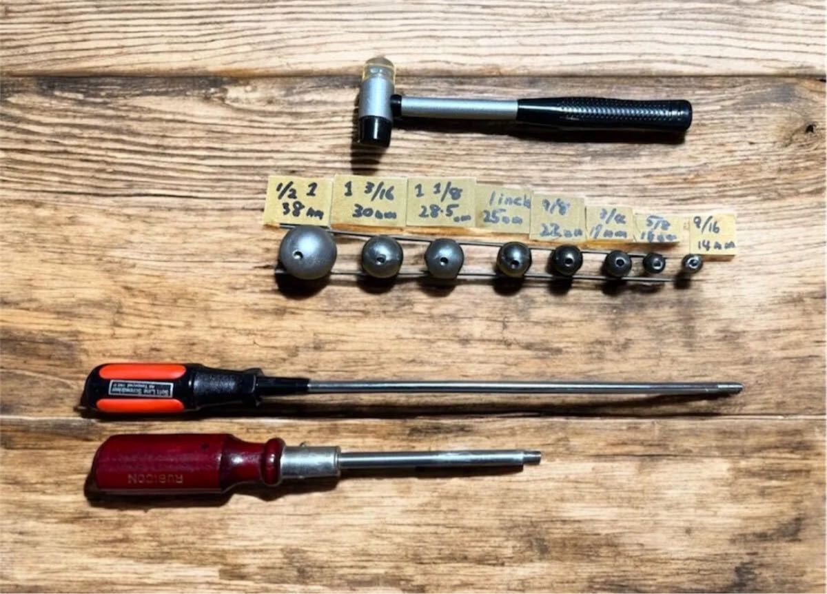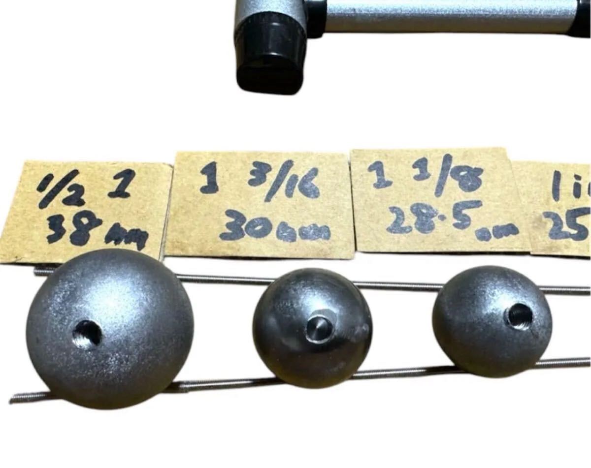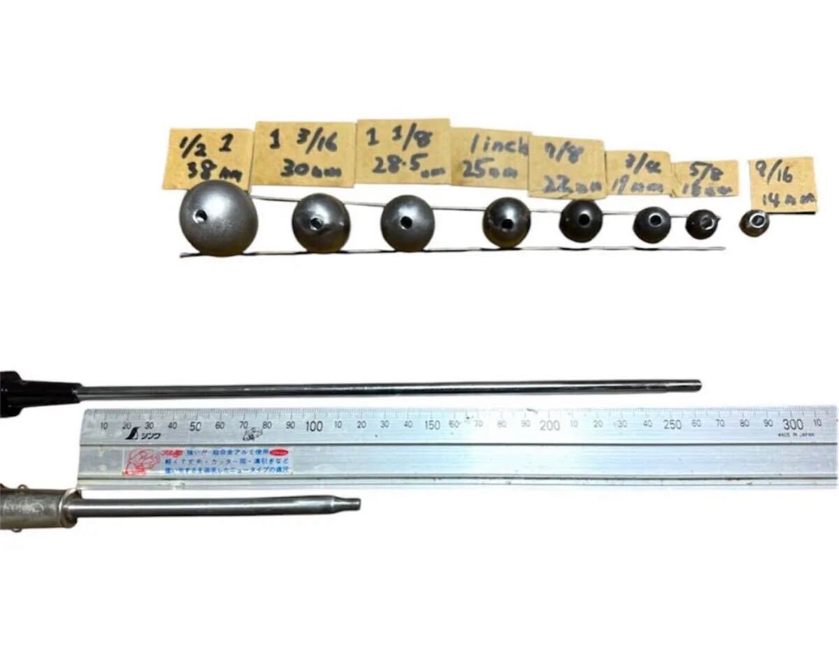 無保証・オマケ一切ありません、管楽器リペア用 260mm 超ロングDR 凹み直し デントボールセット 38mm-14mmまで8種類&調整研磨用ドライバー