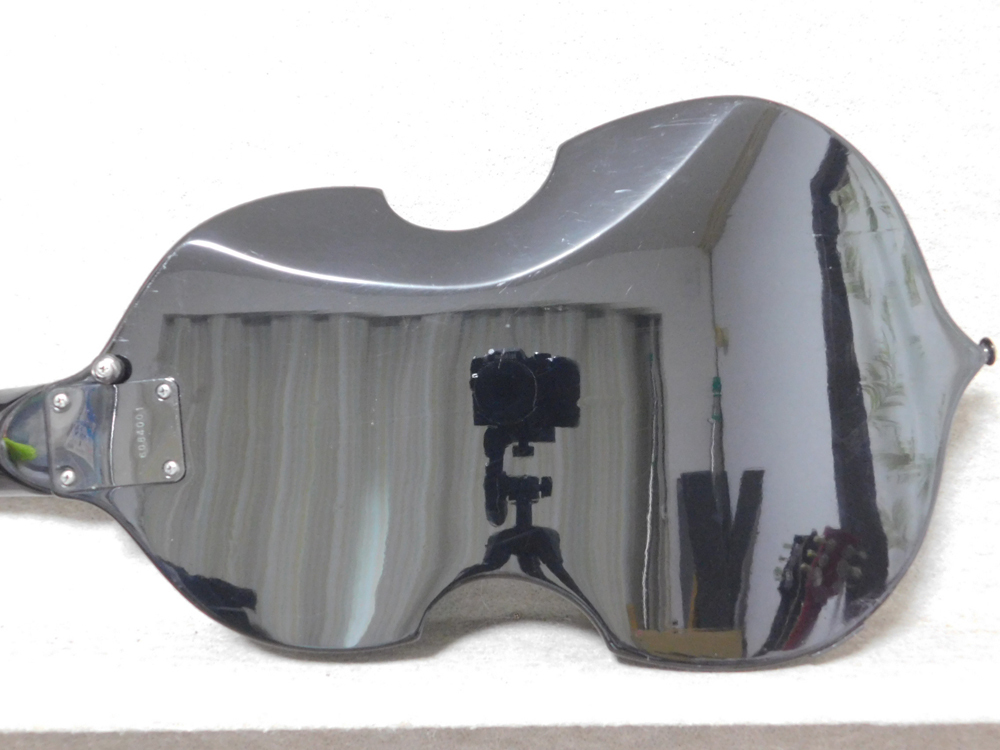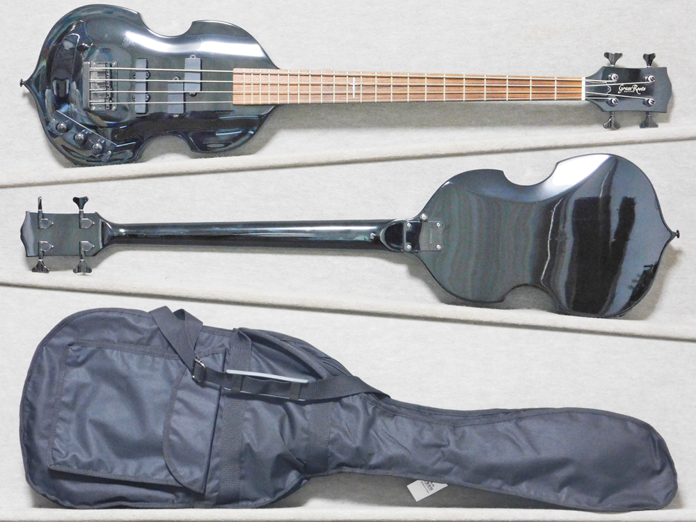 このモデルLUNA SEA JモデルはESP JVB-1(定価300,000円)、EDWARDS E-JV-95(定価95,000円)、Grass Roots G-JV-58(定価58,000円)というラインナップで、商品は一般用ブランドGrass RootsのG-JV-58です。バイオリンベースの形をしていますが、ボディはソリッド(空洞ではない)ですので、ヘフナーやグレコ等とは全く異なる楽器です。