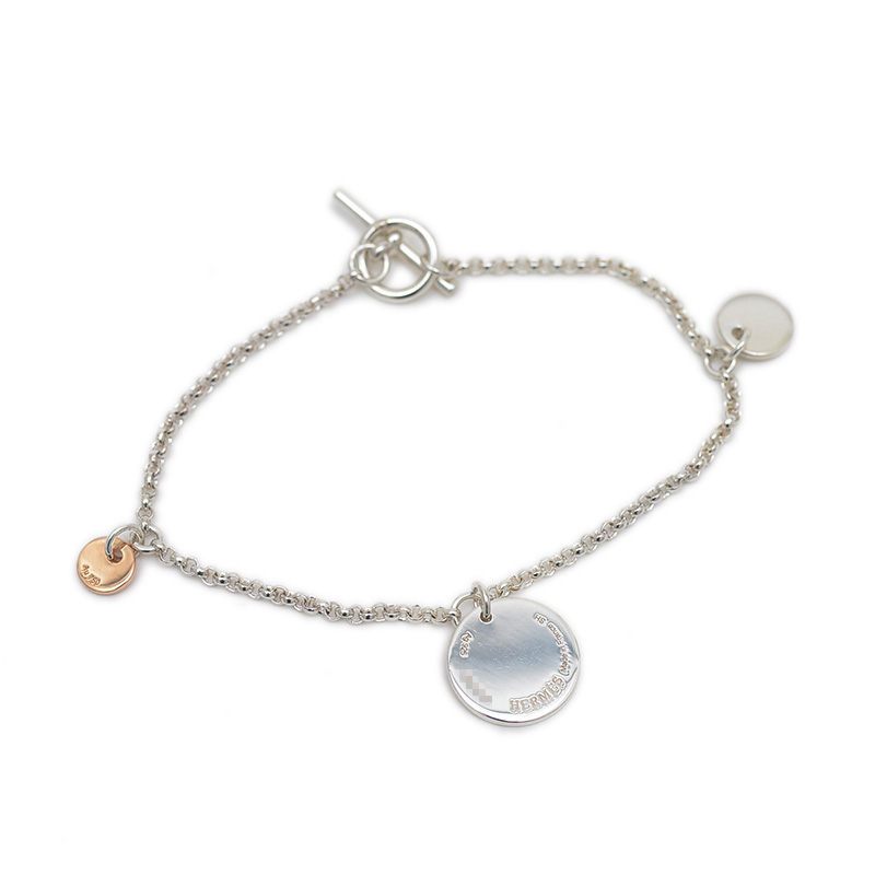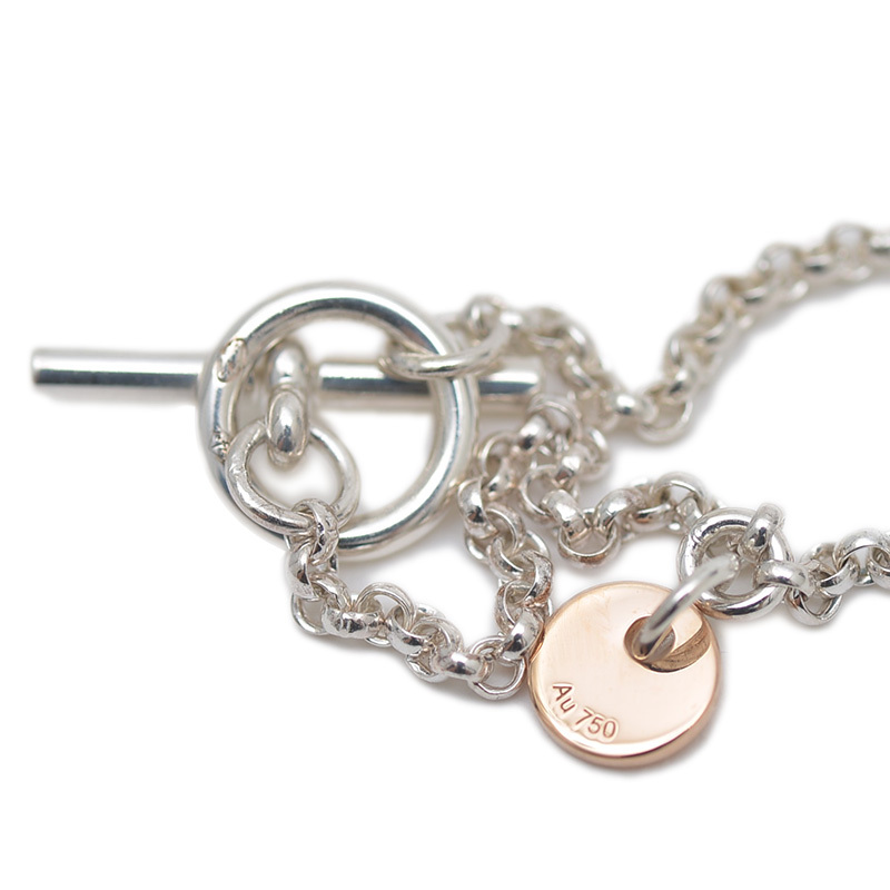 | 商品特徴 | ブランドの象徴である蔵書票(エクスリブリス)のモチーフがデザインされた、エレガントなブレスレットです。上質なシルバー925と温かみのある18Kピンクゴールドが組み合わされ、異なる素材のコントラストが手元に上品な華やかさを添えます。控えめなサイズ感ながらも洗練された存在感を放ち、どんなスタイルにも優雅さをプラスする逸品です。 |