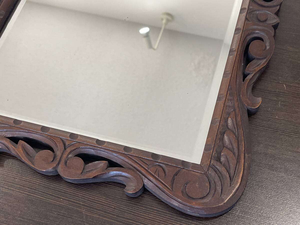★【アンティーク ウォールミラー インテリア 壁掛け式鏡】壁掛け 木製鏡 レトロ ミラー★寸法:約43×33cm