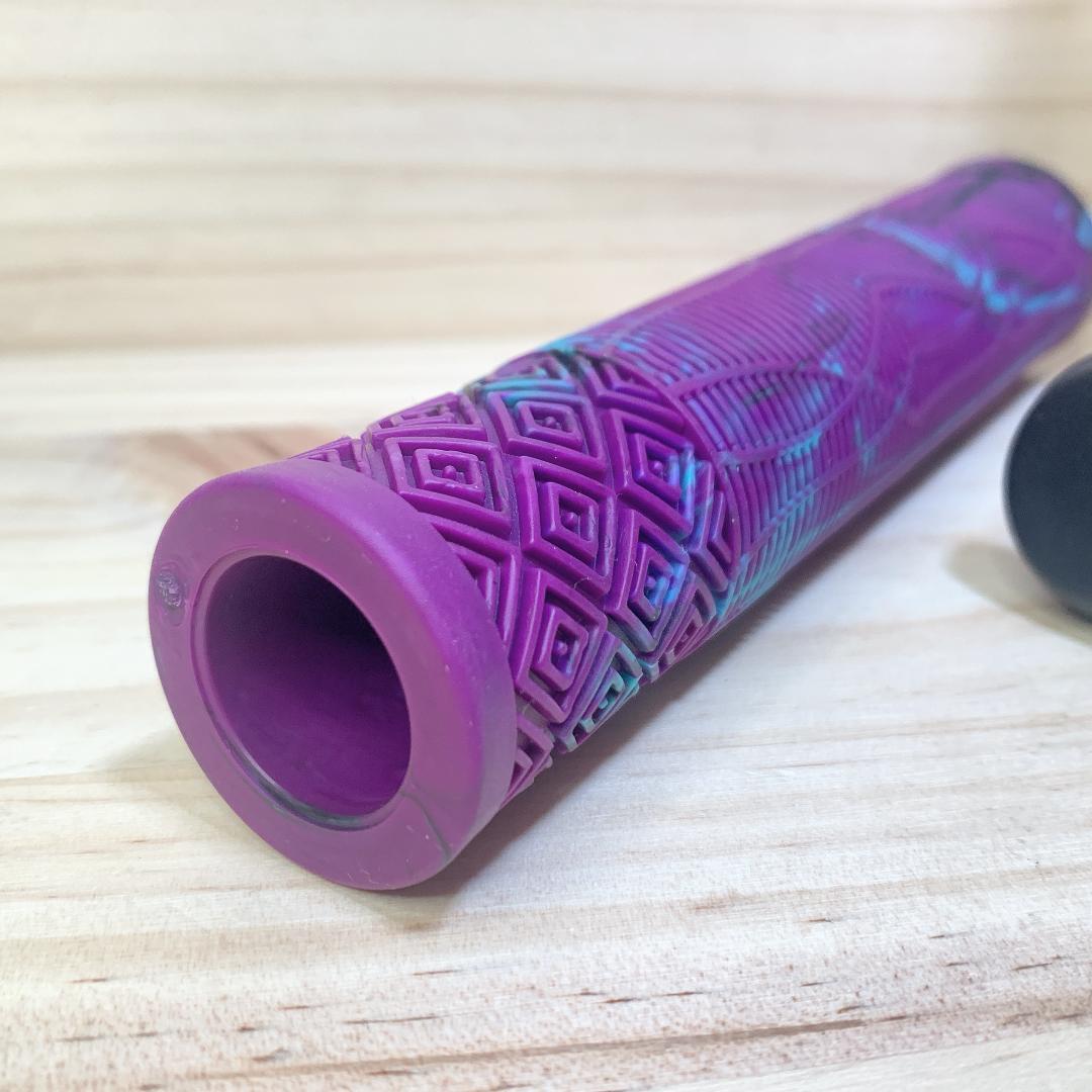 MTB・BMX・クロスバイクなど幅広い車種に対応する 自転車用ラバーグリップ(160mm/22.2mm) です。おしゃれなパープル×マーブルブルーのデザインで、街乗り・カスタムに最適なハンドルグリップです