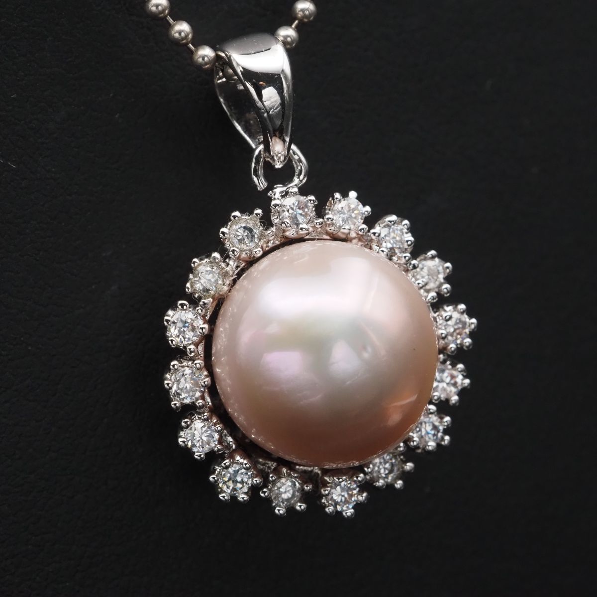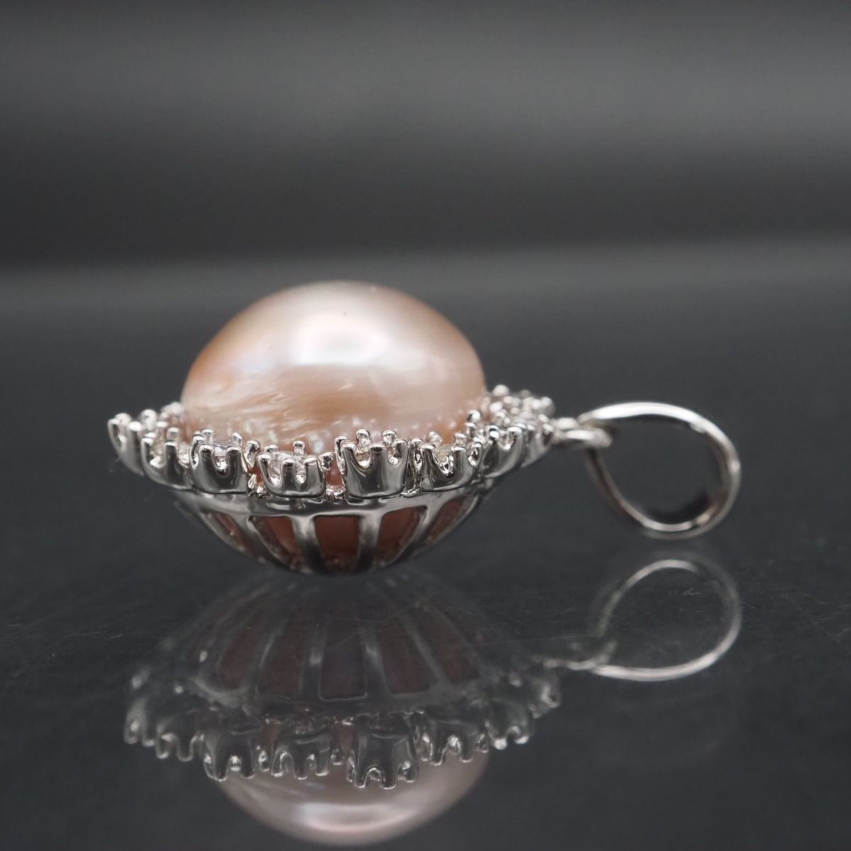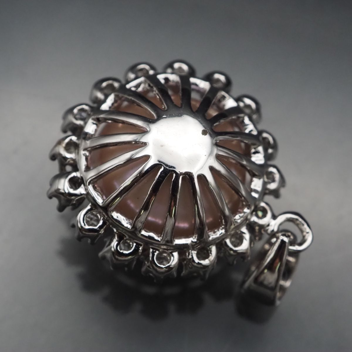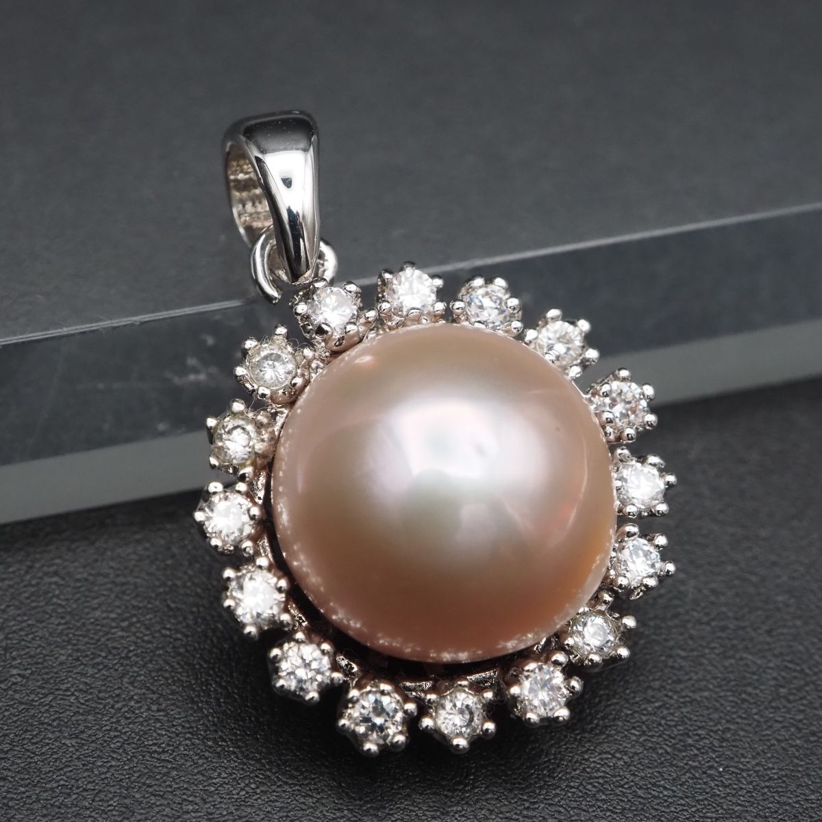F933 真珠 パール ペンダント トップ ピンク系カラー ラインストーン デザイン シルバー チャーム ヘッド 6月誕生石