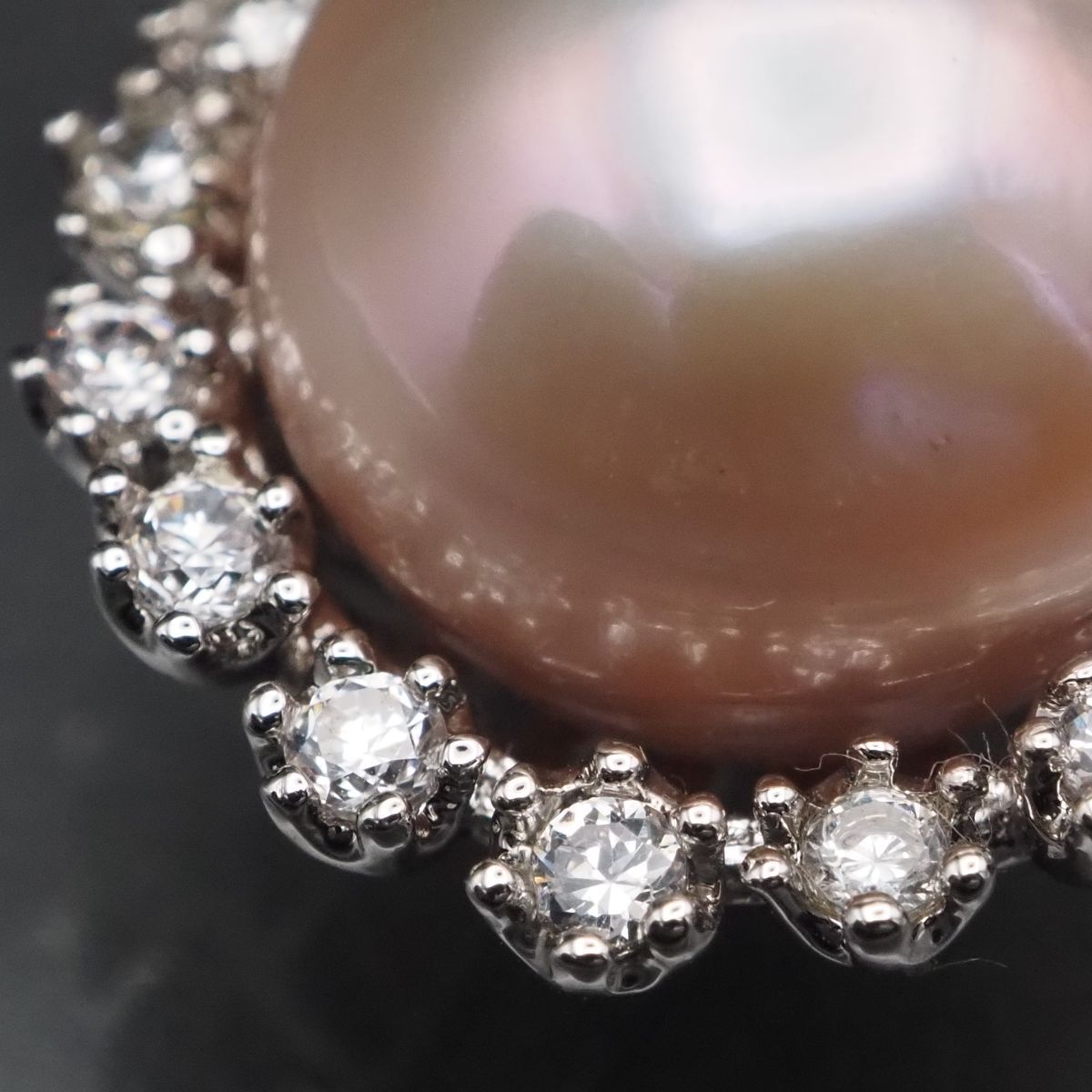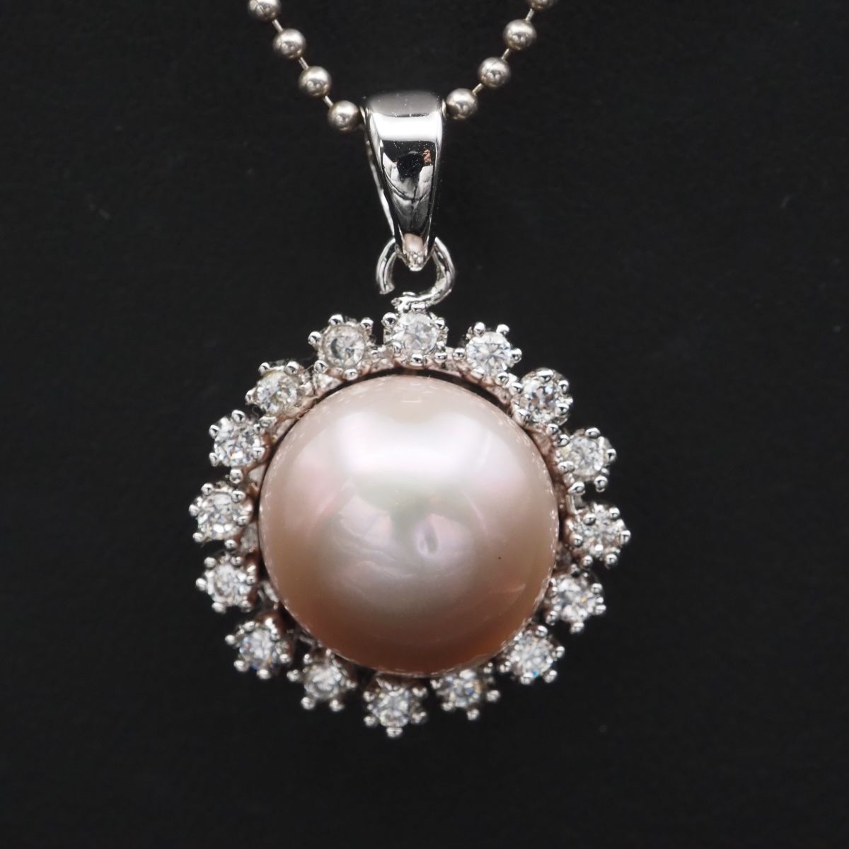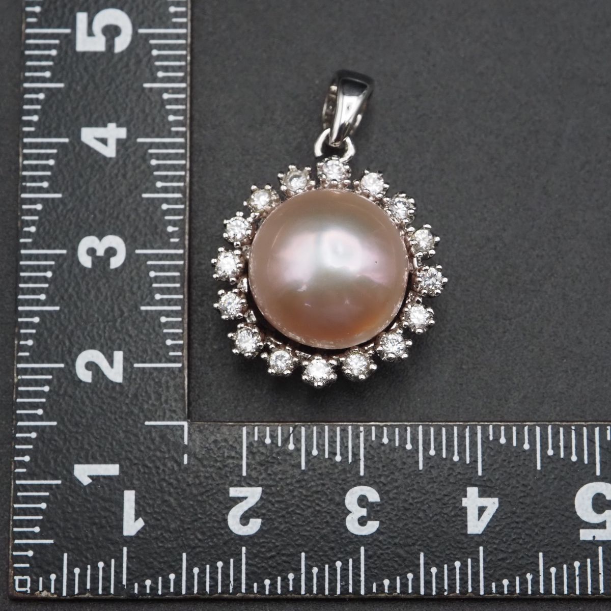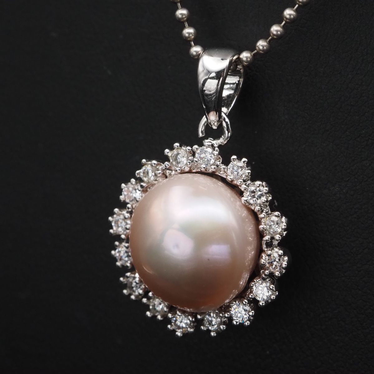 F933 真珠 パール ペンダント トップ ピンク系カラー ラインストーン デザイン シルバー チャーム ヘッド 6月誕生石