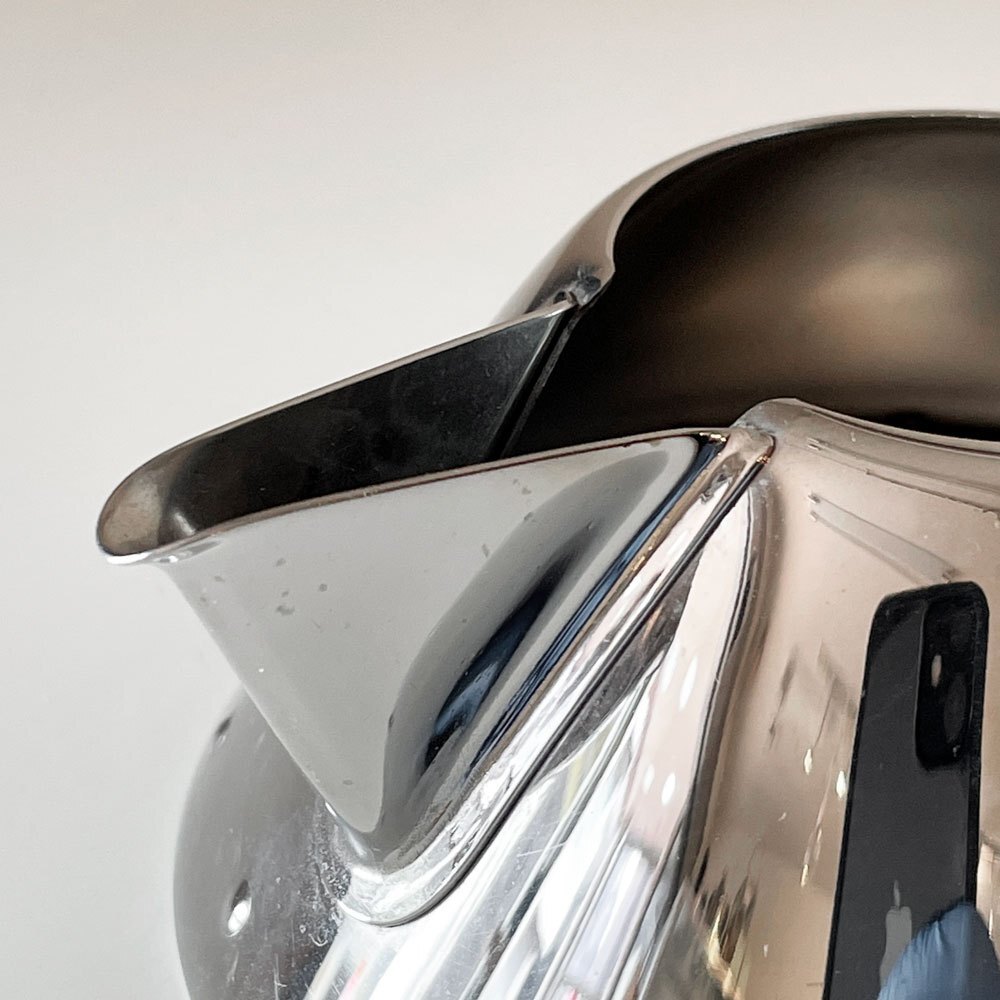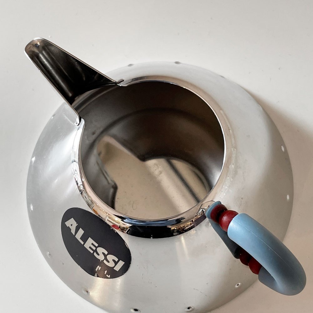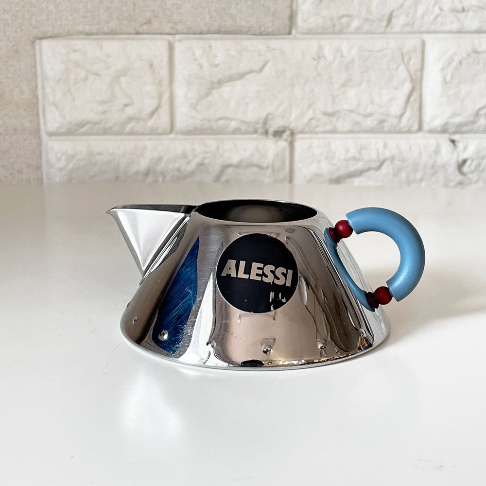 | コメント | ALESSIは1921年にイタリアのオメーニャで金属製品を手掛ける工房として創業し、その上質なステンレス製品は世界的に評価されてきました。 そんなALESSIのために、アメリカ生まれのデザイナー‘’Michael Graves’(マイケル・グレイブス)がデザインしたクリーマー。 ALESSIならではの銀色のボディが山のような三角を描き、底の縁には等間隔で小さな突起が施されています。 丸みを帯びた取っ手からは、いつか遊んだおもちゃのような、懐かしさや幼さが感じられます。 可愛らしくもありつつ、どこか知性を感じられるデザイン。 ティータイムにも、インテリアとしてもお使い頂けます。 ※当ショップは、主にリサイクル品を取り扱っております。基本的にUSED品である事をご理解頂き、ご入札をご検討下さいませ。 |