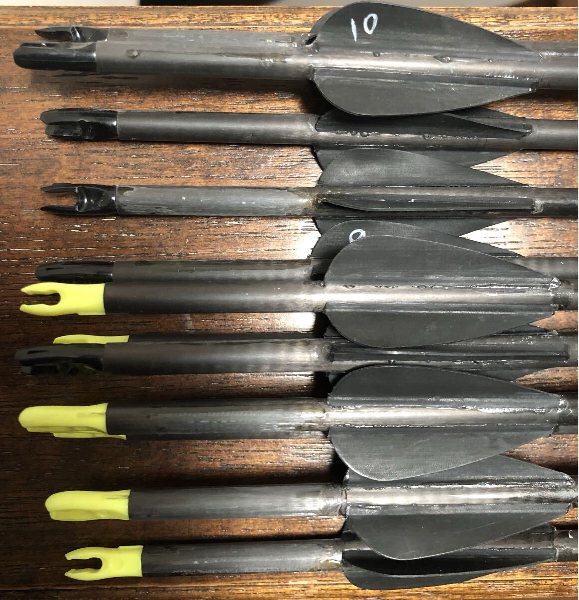 作成しましたが使用コンパウンドが非力過ぎてスパイン全く合わず保管していました。試し射ちした程度で