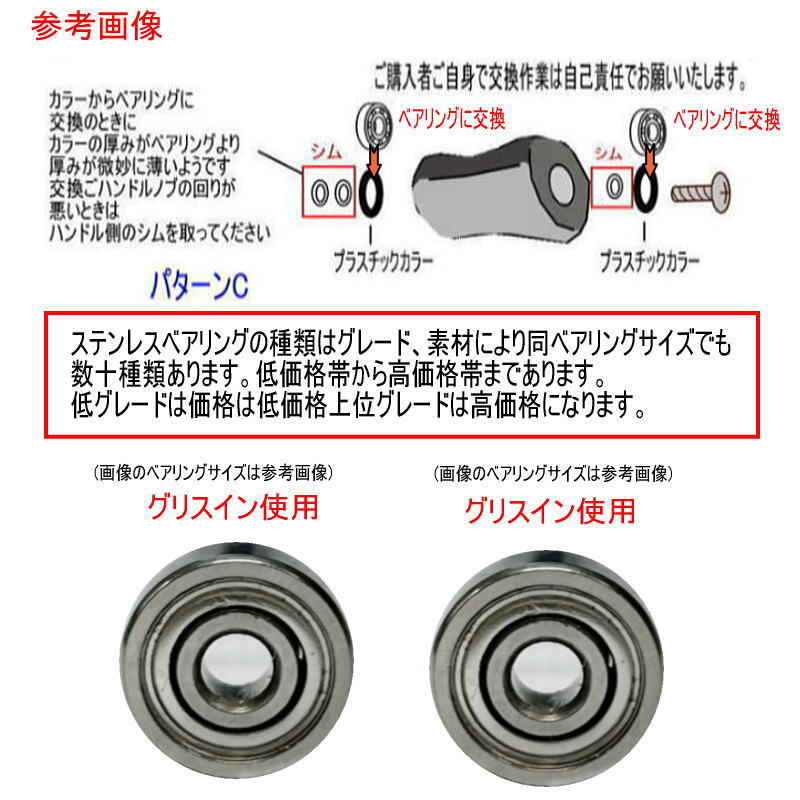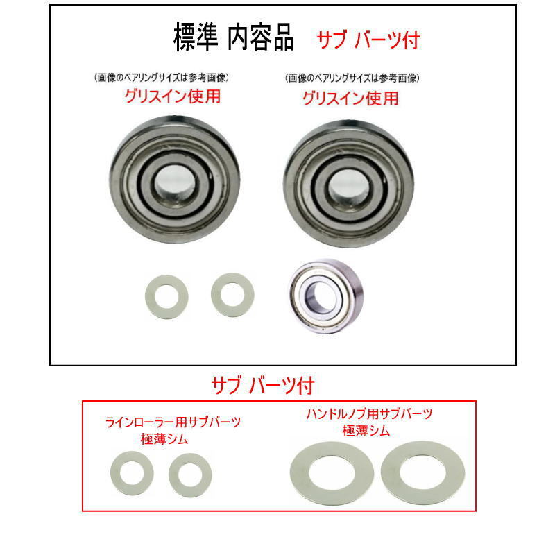 上位グレードの良品低粘度グリス入りシールドステンレスベアリング(一部グリスレス・オープン)です。