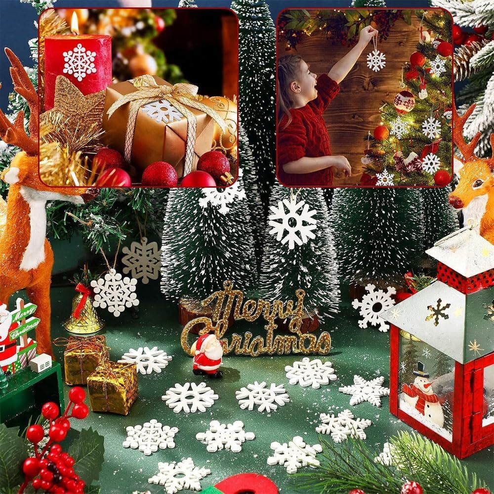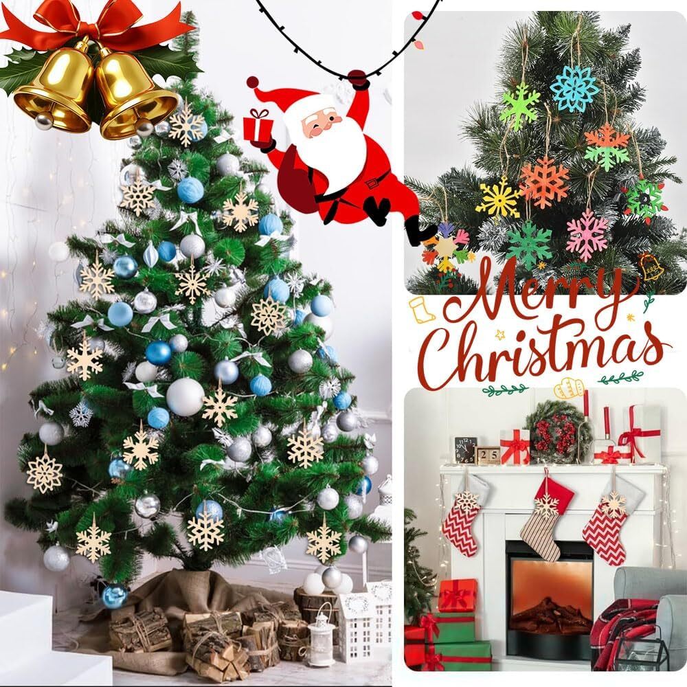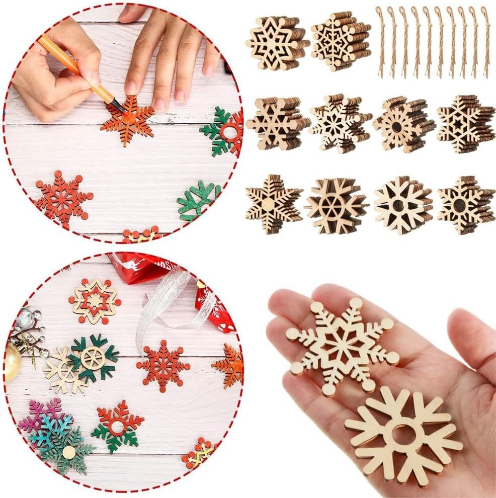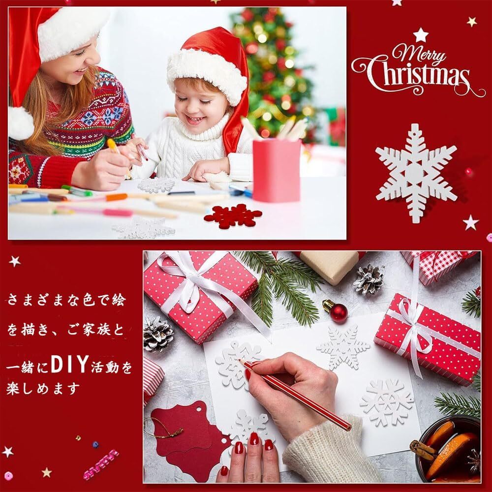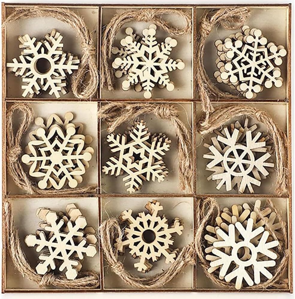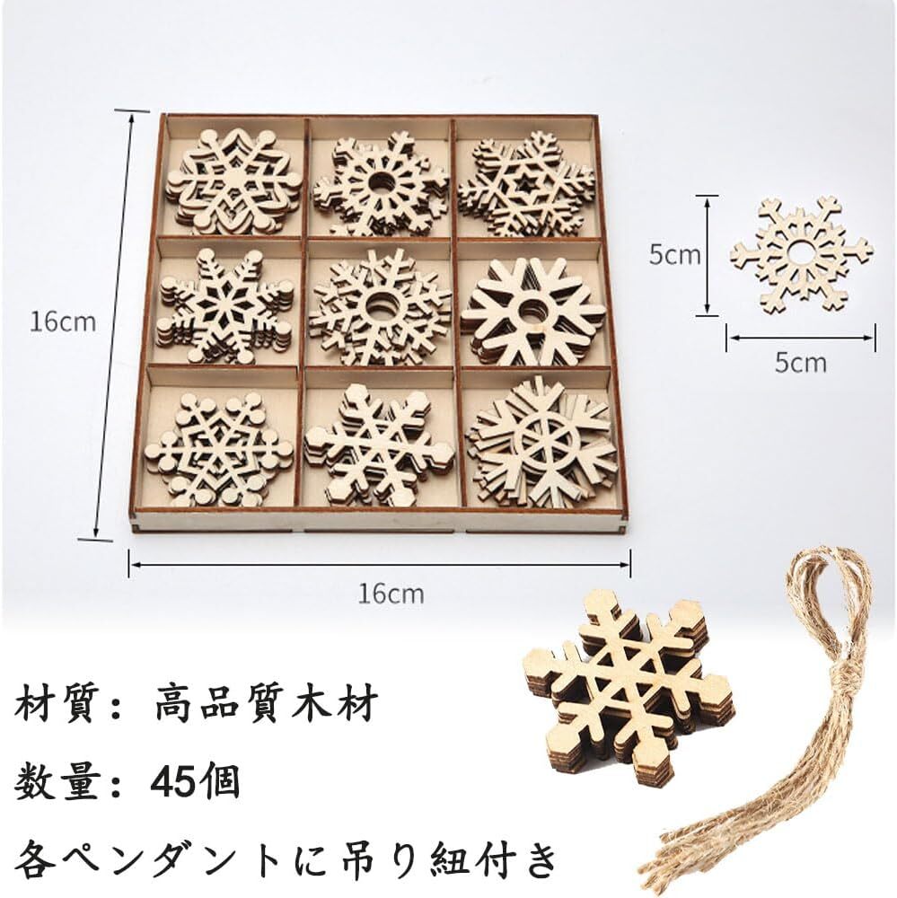 45個セット クリスマス オーナメント オーナメント 木製 雪の結晶 麻紐付属 ぶら下げ 小物 DIY